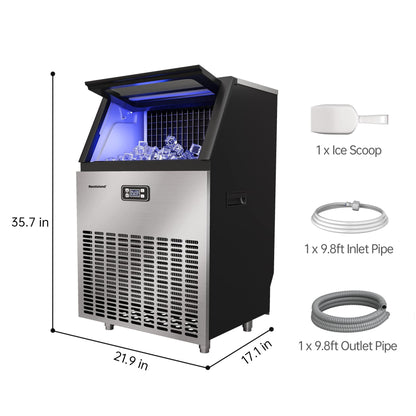 RESTISLAND Commercial Ice Maker Machine, 270 lbs/24 Hours, 48 lbs Storage Bin, Stainless Steel, Blue Light, Freestanding, Great for Home or Business, Includes Ice Scoop, Connecting Hose