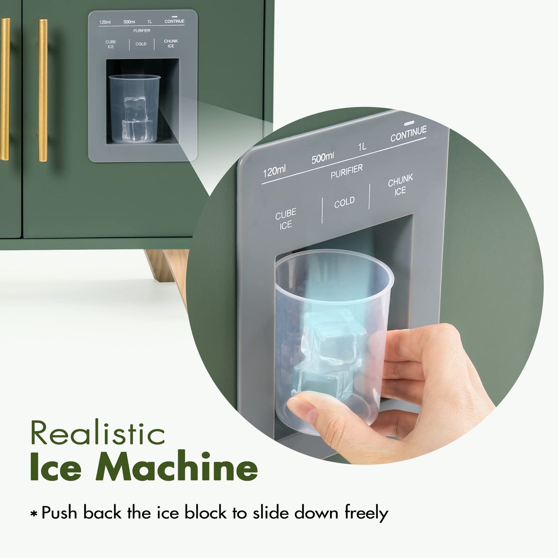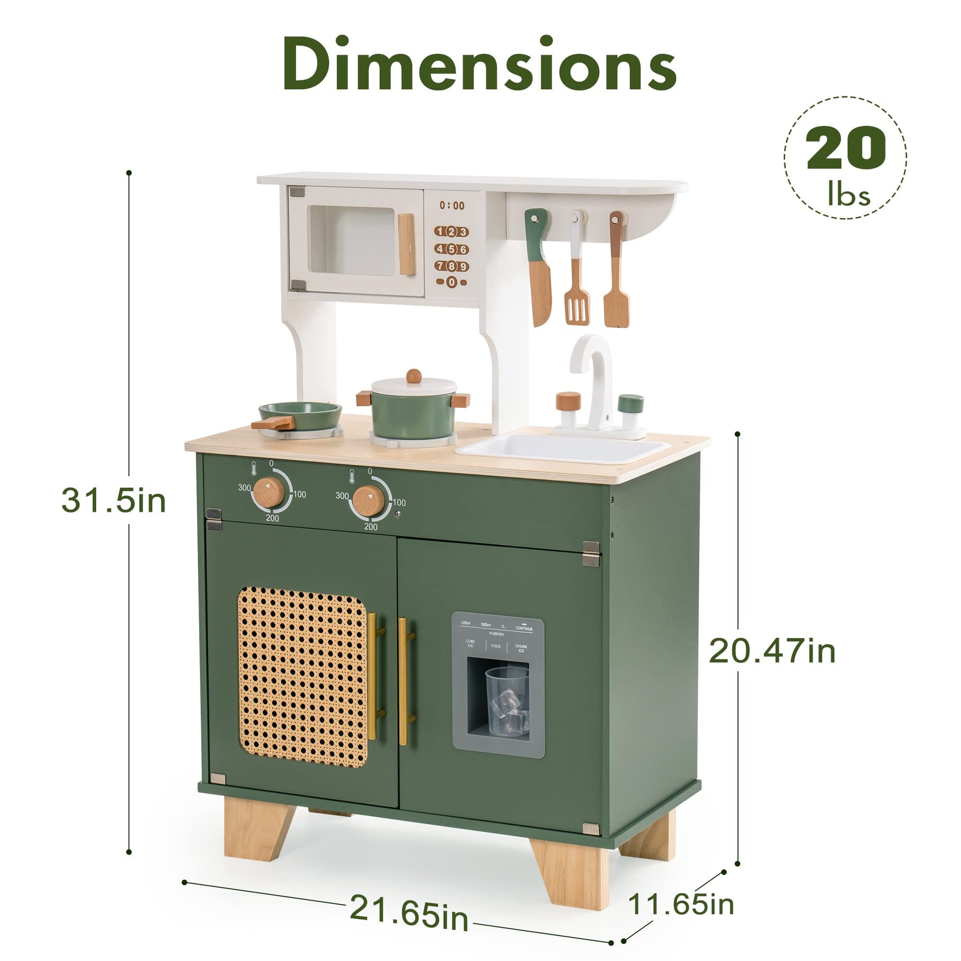 - Realistic Features for Enhanced Play: Experience endless pretend cooking possibilities! This Kids Kitchen Playset includes fun accessories and a unique, working ice dispenser that adds a layer of authenticity, making the Vintage Wooden Play Kitchen truly stand out.