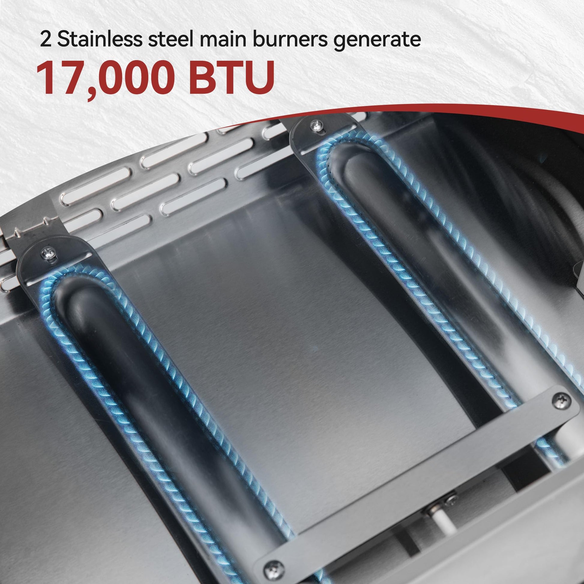 - Battery-free Operation: Experience quick and reliable startup every time with the piezo ignition, ensuring a flame on each burner without the need for batteries