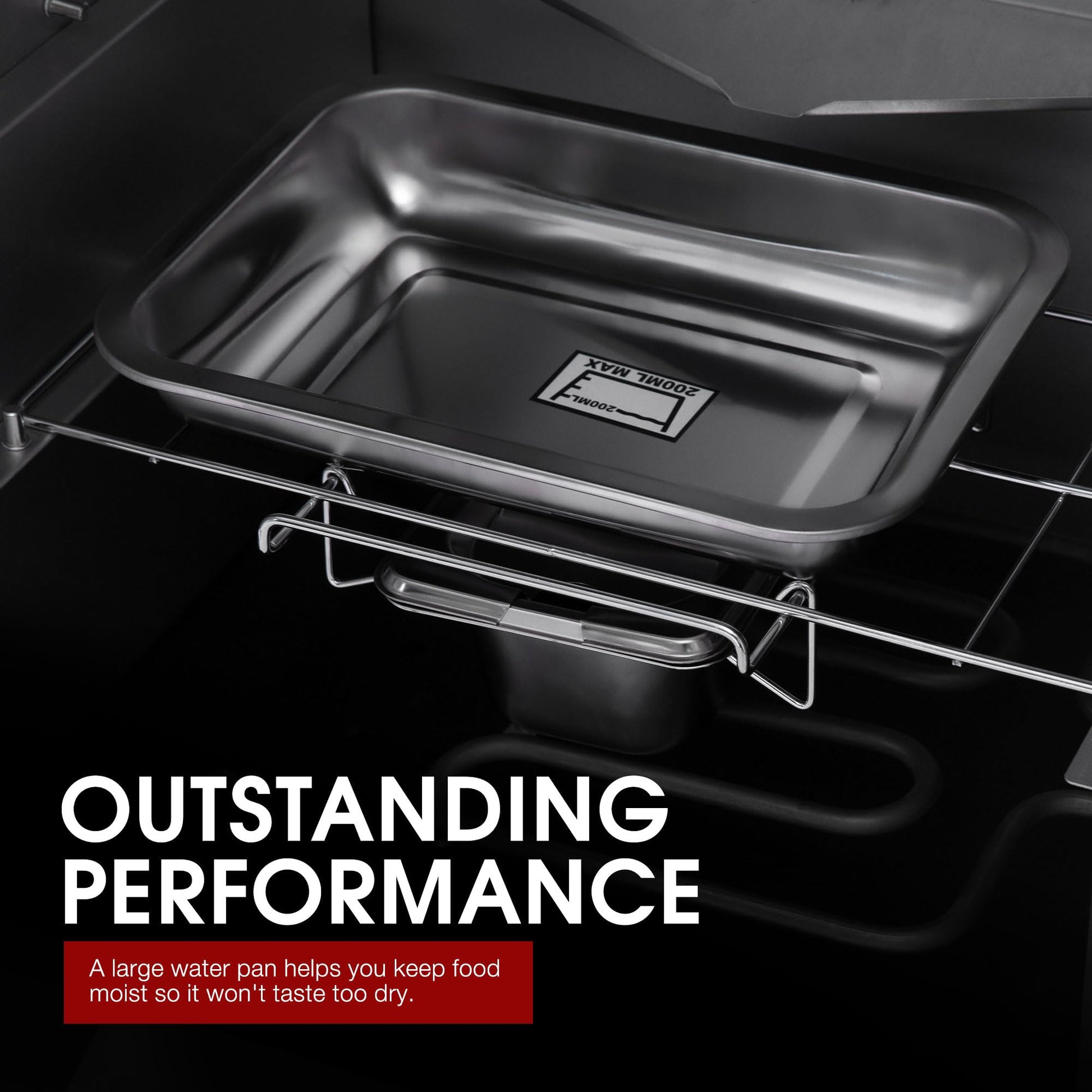 - Better Smoked Flavor: The bottom heating tube works with a removable stainless steel water pan and a chip box to add smoked flavor and make it more tender