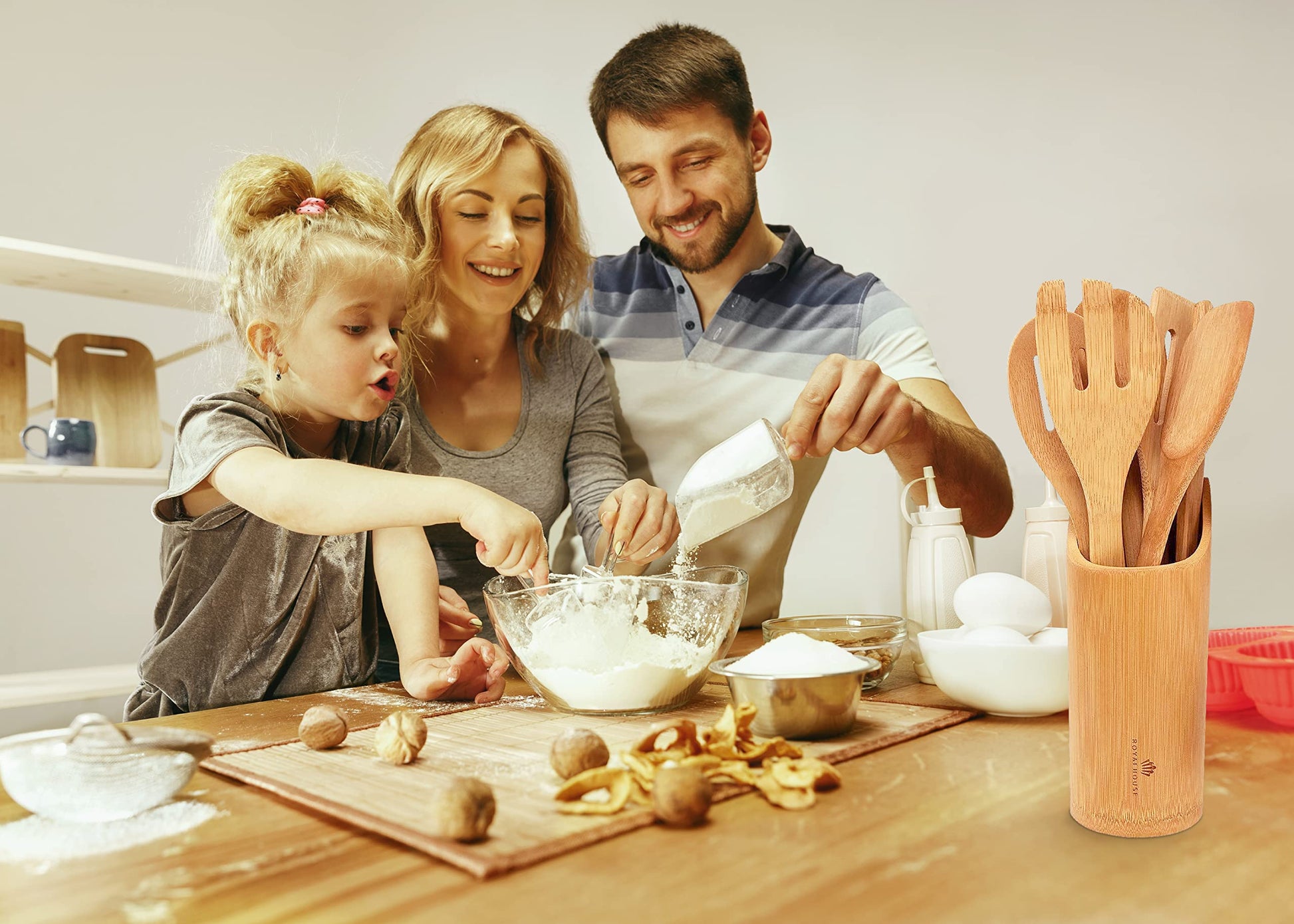 - Safe: Our cooking utensils are made from high-quality bamboo and are not made of laminated pieces, free of harmful paints, coatings, lacquers, glues, etc.