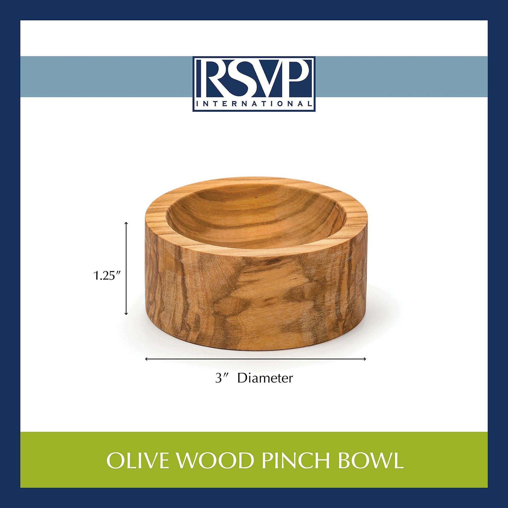 Details: Rsvp strives to offer quality kitchen products and cooking tools at competitive prices. Our RSVP olive Wood pinch bowl is a perfect example. Serve specialty salts, sugar, spices and herbs easily at the table using these gorgeous pinch bowls. Made of Italian sourced olive Wood these little containers hold 2-ounces each. 3-Inches in diameter by 1-3/8-inches high. Handwashing recommended. When all the right people, and ingredients, kitchen tools, and food come together, we call this the art of gathering.