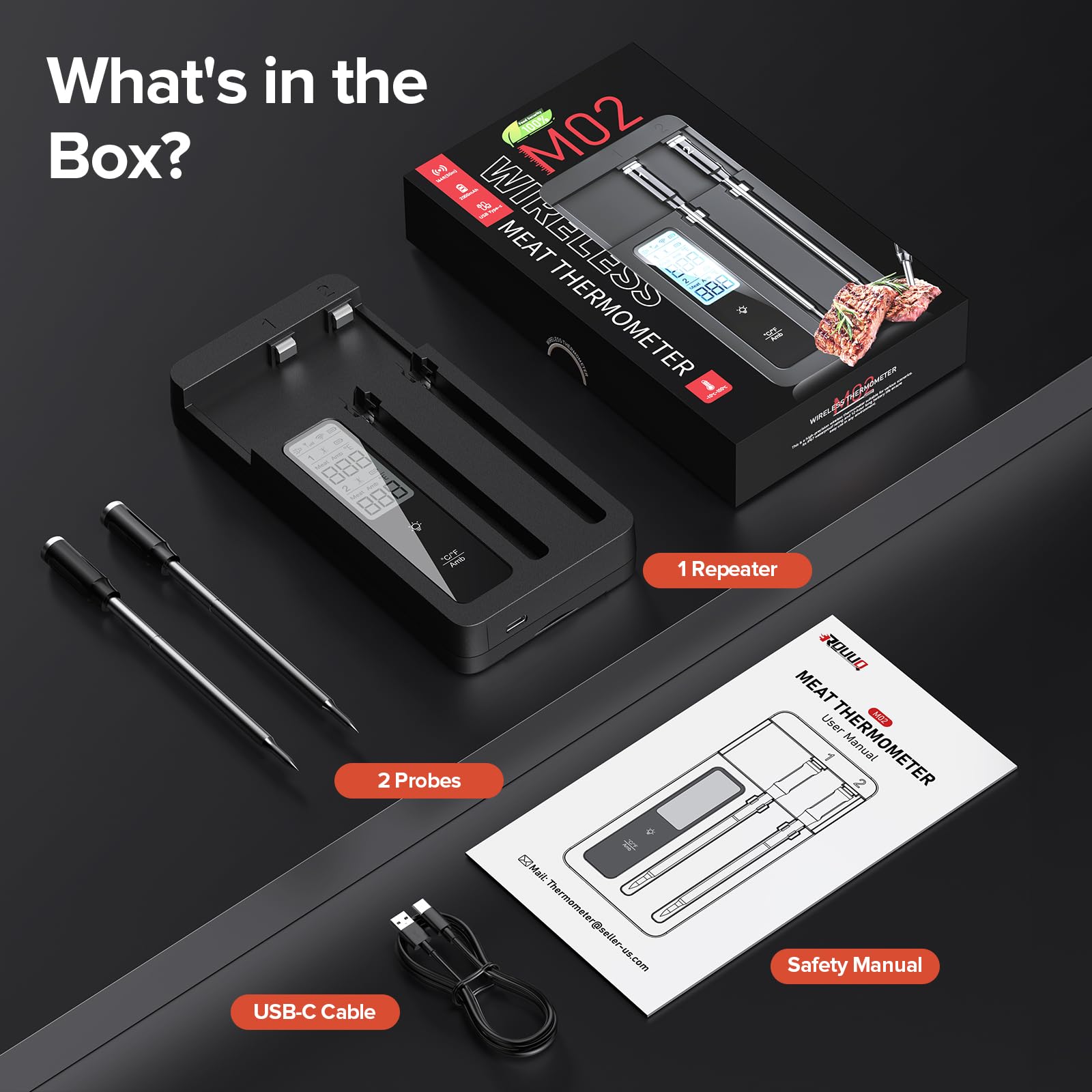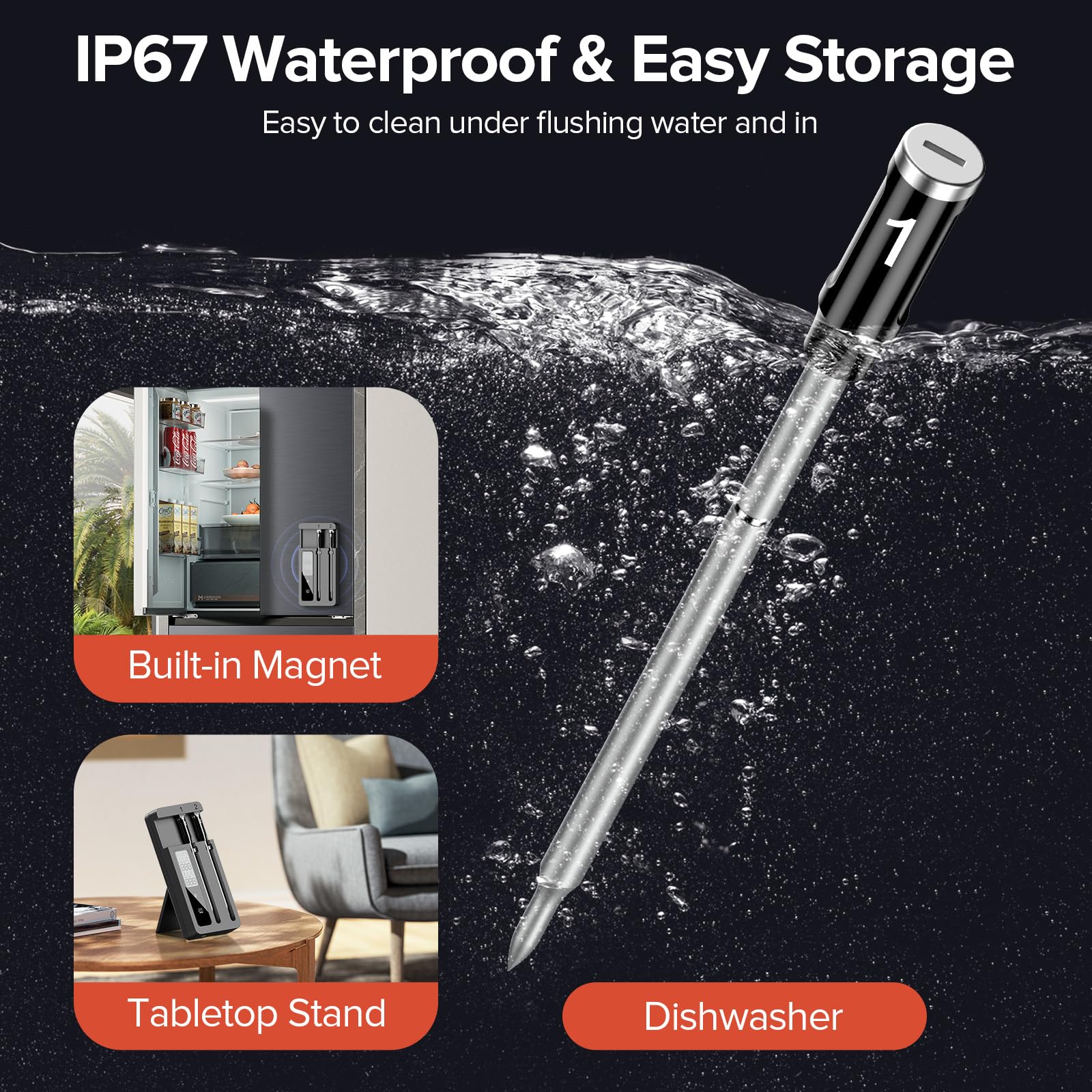 - Effortless Cleaning:Features IP67 waterproof probes that are dishwasher-safe for hassle-free cleanup after cooking.
