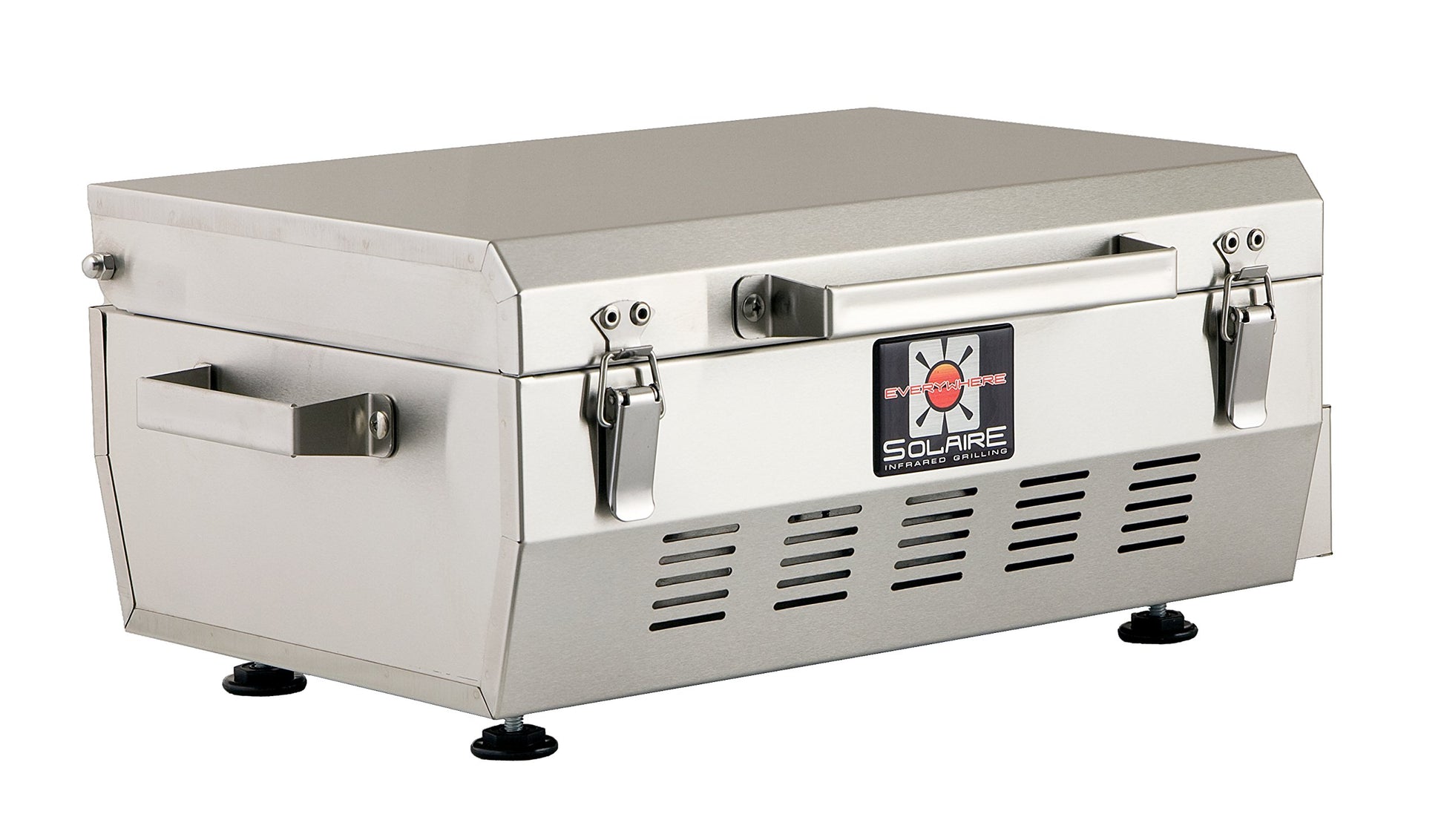 Details: The Solaire everywhere is perfect for tailgaters, picnics, RVs, camping, boating, balconies & backyards - everywhere you want great tasting, juicy grilled food. This use-made portable grill features the Solaire infrared burner, which heats up in just three Min to searing hot temperatures that lock in the juices. it also has the Solaire v-grate, which improves flavor & virtually eliminates flare-ups. The only assembly is to attach the handles (6 bolts) & the four adjustable', otherwise this fully welded all-type 304 stainless steel grill is ready to use out of the box. it operates out of the box on 1-Pound propane bottles (not included), & can be used with larger BBQ propane tanks with the adapter hose accessory (item #sol-sahose6), on natural gas with the natural gas Conversion kit (item #sol-sangc), or with an installed low-pressure propane system (like in an RV) with the low pressure LP Conversion kit (sol-salpc). the hood, which protects the burner during transport & storage, has spring-loaded latches. The Solaire everywhere is a grilling Machine that gives you the great flavor of an intensely hot charcoal fire with the control, convenience & consistency of gas. Become the undisputed Wizard of the campsite, the envy of your parking lot, & the Hero of your family when you serve them juicier, more flavorful food then they've ever tasted from an ordinary grill.