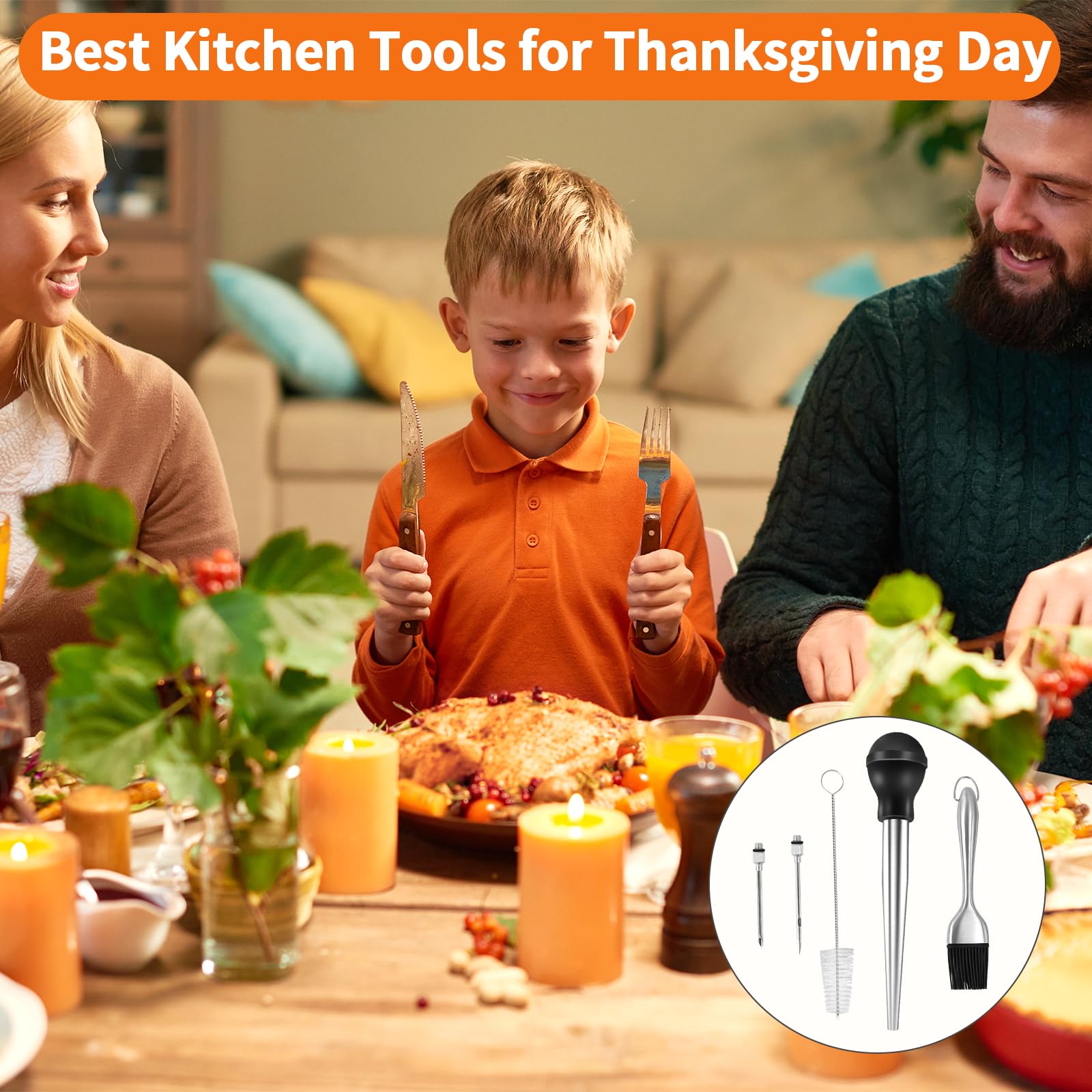 - 【Perfect for Juicy, Flavorful Feasts】Ensure your holiday turkeys and roasts are cooked to perfection with our 11-inch stainless steel turkey baster for cooking. The durable design withstands high heat, making it ideal for basting during Thanksgiving, Christmas, or any family gathering. Use turkey bastet to add extra moisture and flavor while maintaining the perfect roast