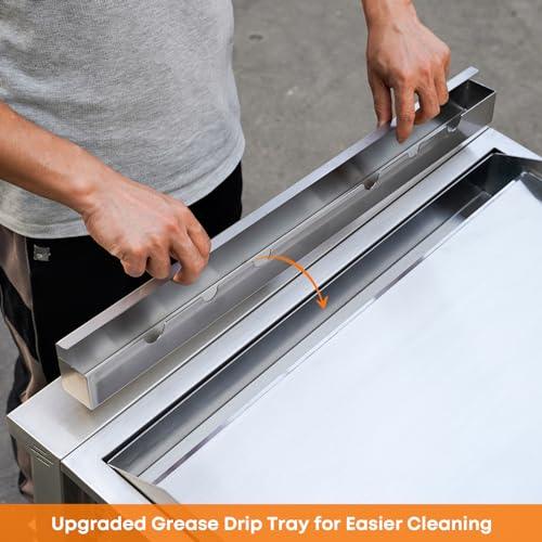 - 【Easy to Clean】 The stainless steel components, flat top design and upgraded drip tray included also make the griddle easy to clean and maintain.