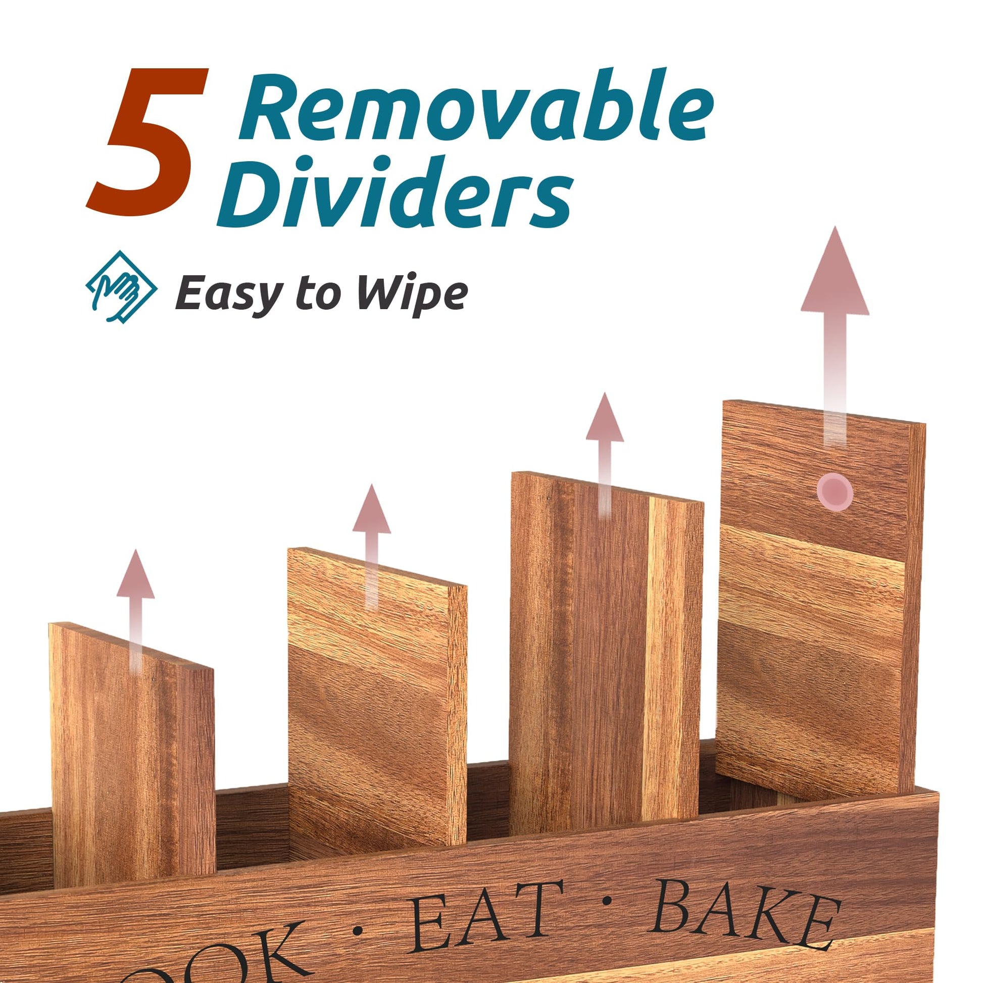 - REMOVEABLE COVER - The middle divider can be removed, more convenient to clean the corner. Please wipe it after cleaning. For the first time to use, we recommend you wipe it with a damp cloth. It is not recommend that you wash wooden products in the dishwasher. Please wash the utensil holder by hand.