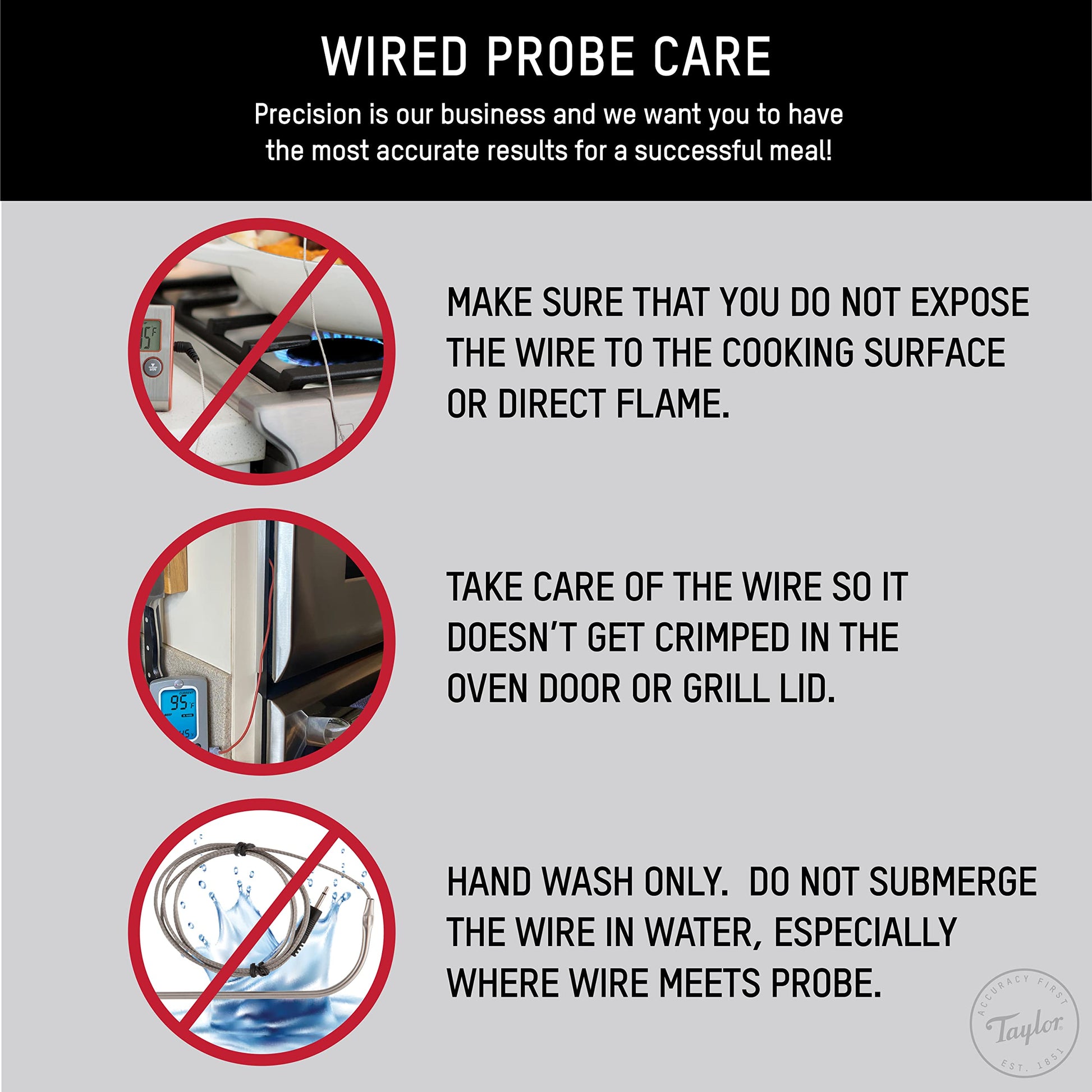 Taylor Programmable with Timer Instant Read Wired Probe Digital, Meat, Food, Grill BBQ Cooking Kitchen Thermometer, Stainless Steel