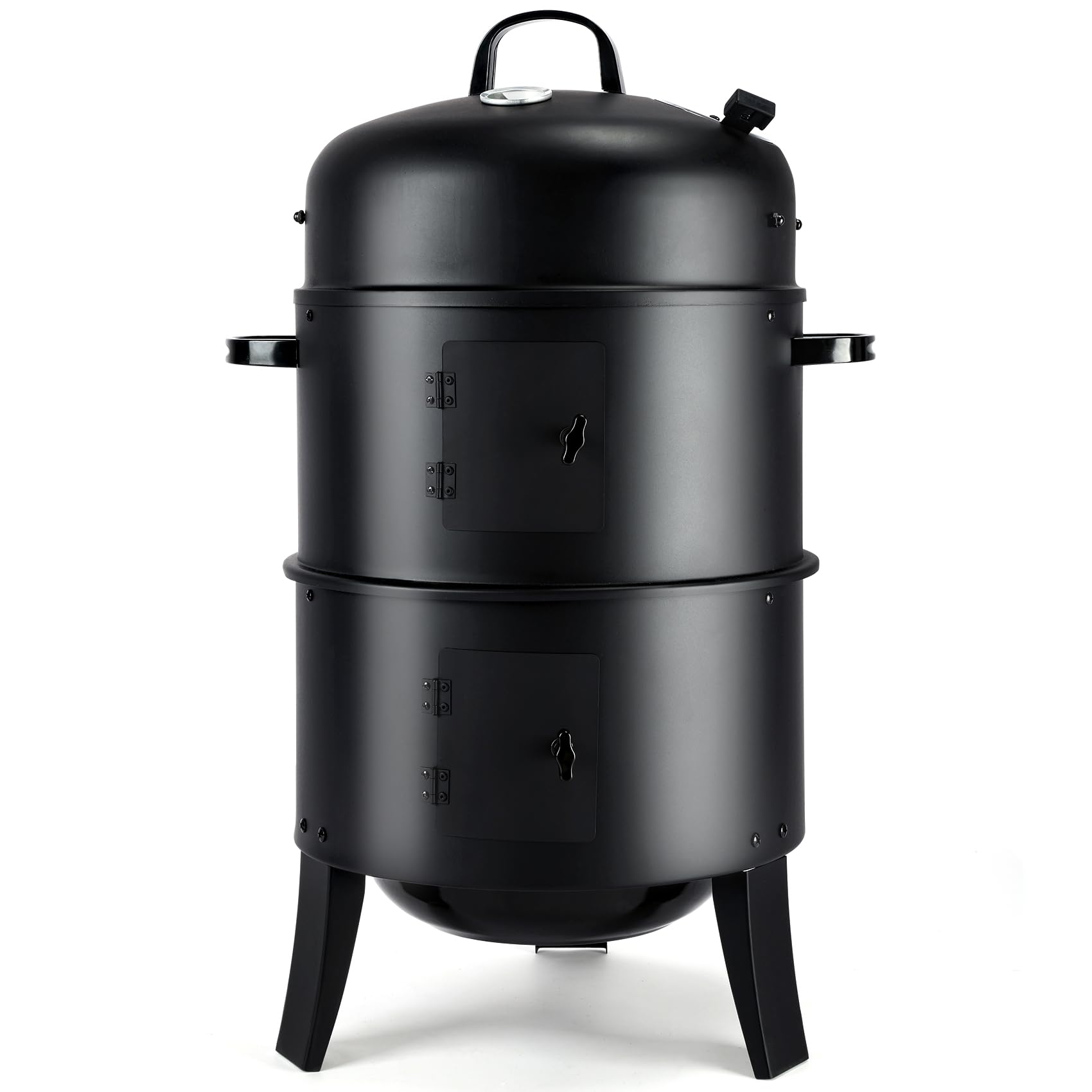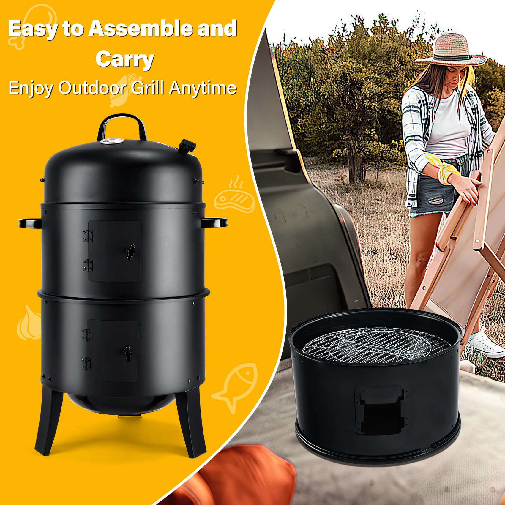 TCFUNDY 32" Vertical Charcoal Smoker Grill, Heavy-Duty BBQ Grill with Built-in Thermometer, 3 in 1 Grill and Smoker, Portable Meat Cooker with Air Vent for Outdoor Barbecue Cooking
