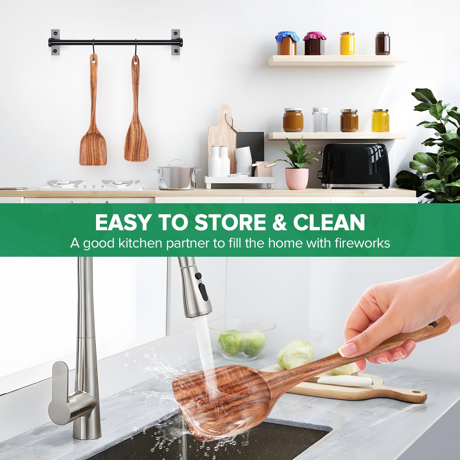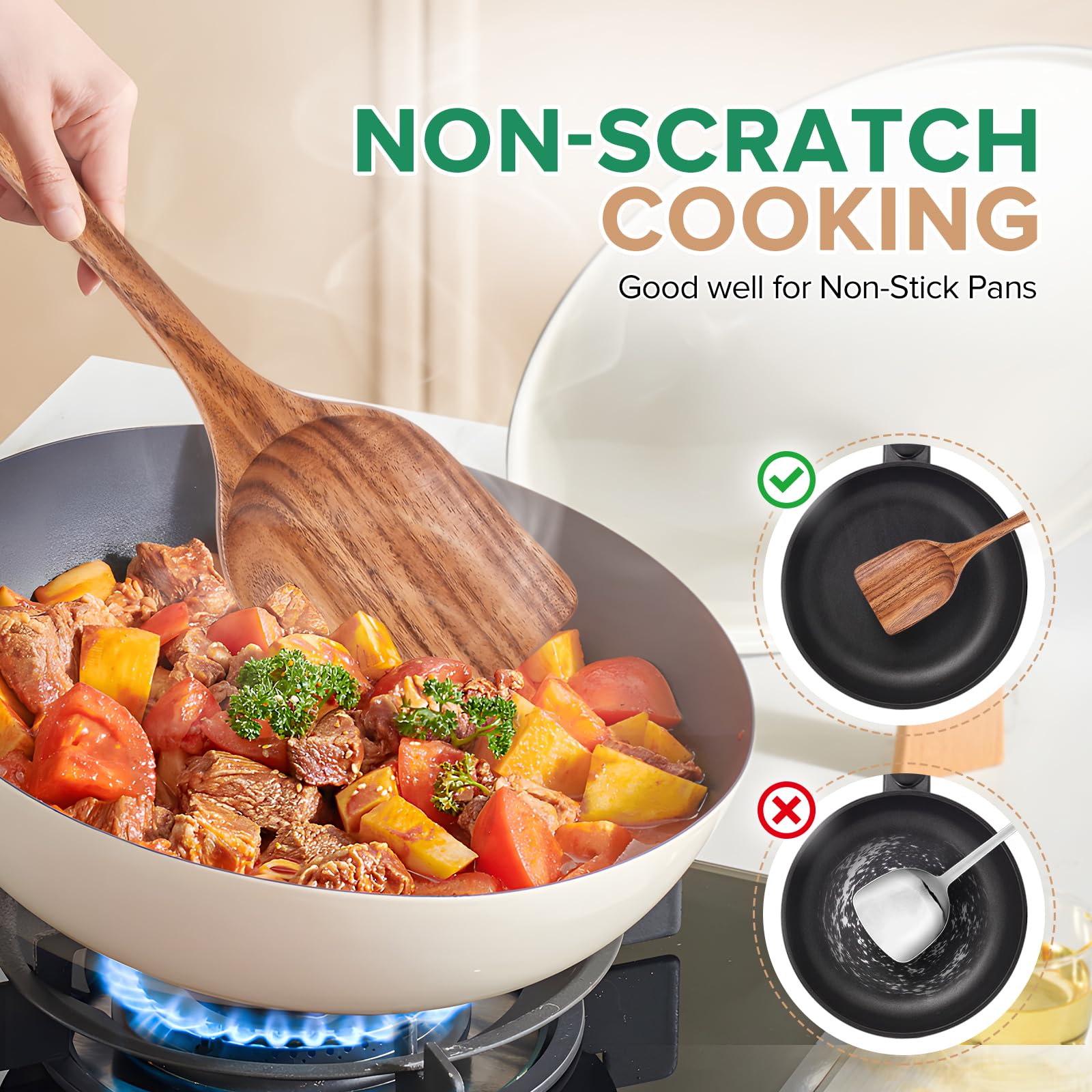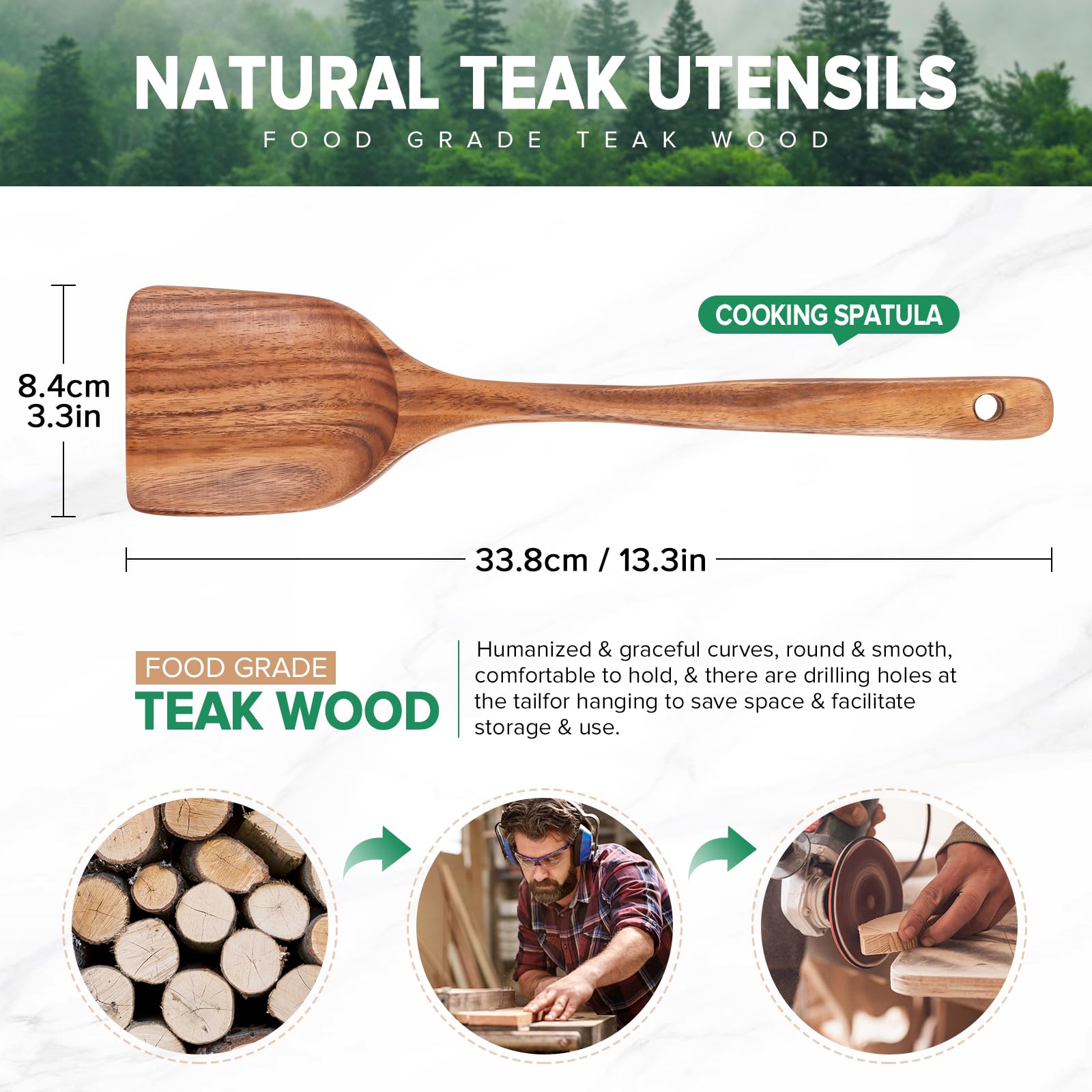 - Premium Material:This wooden spatula is made of food-grade natural teak wood.Non-toxic,no-rust,heat-resistant, bpa-free and healthy for daily kitchen use.Our non-stick wooden spatula for cooking is also lightweight solid hard texture, good stability and won't deform easily.