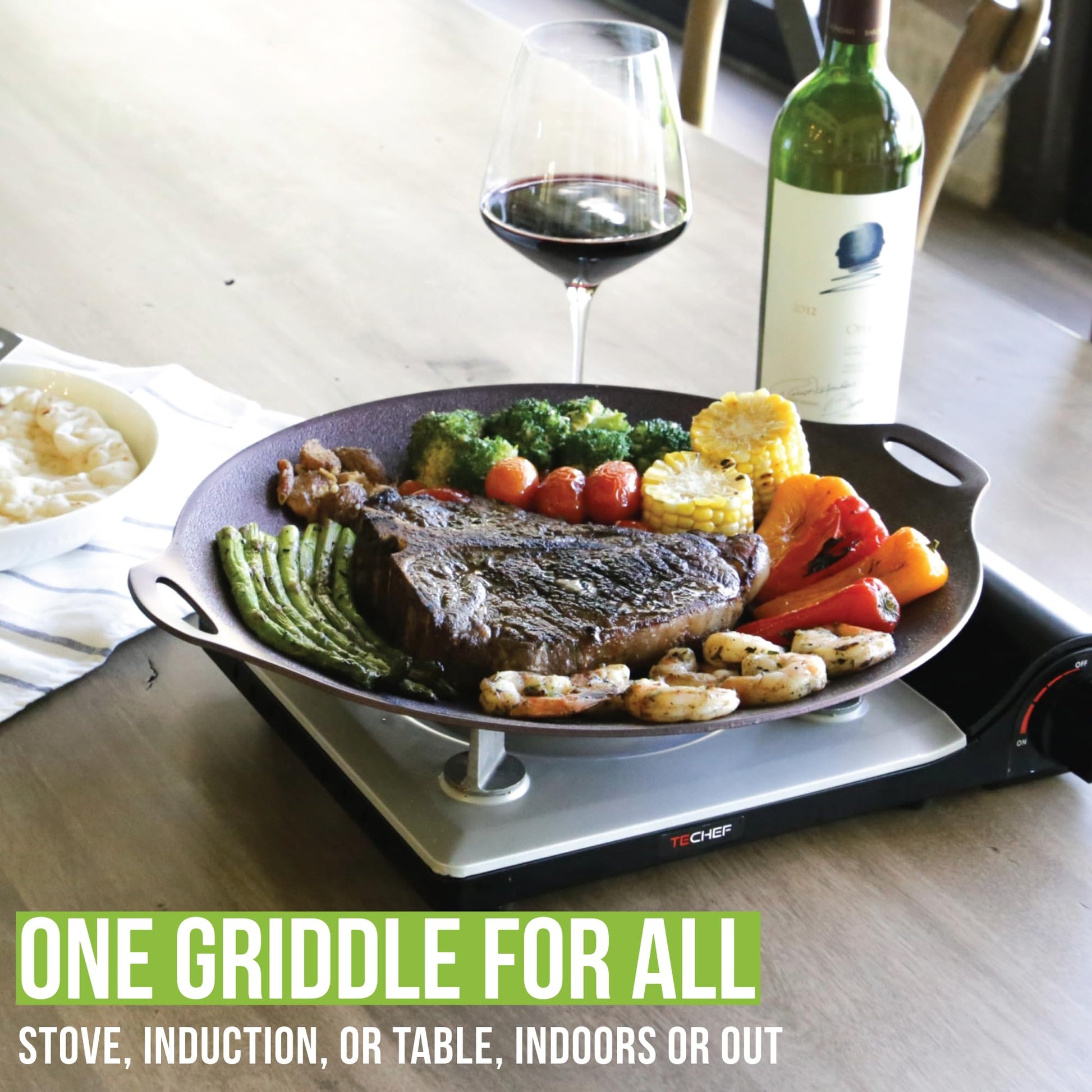 TECHEF - 14-inch Nonstick Round Griddle Grill Pan for Korean BBQ/Teppanyaki Pan, Tawa, Roti Pan/Induction Ready/Made in Korea (14-in)