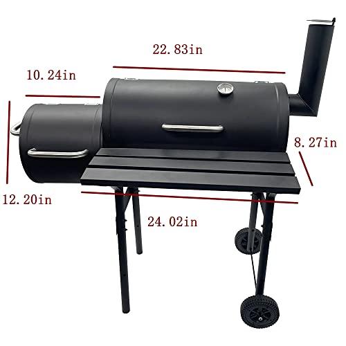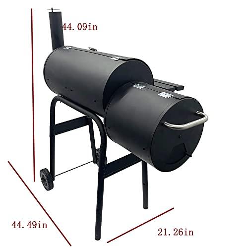 TECHTONGDA Offset Smoker with Cover Outdoor Charcoal Grill Smoker with Side Fire Box for Camping, Backyard Cooking
