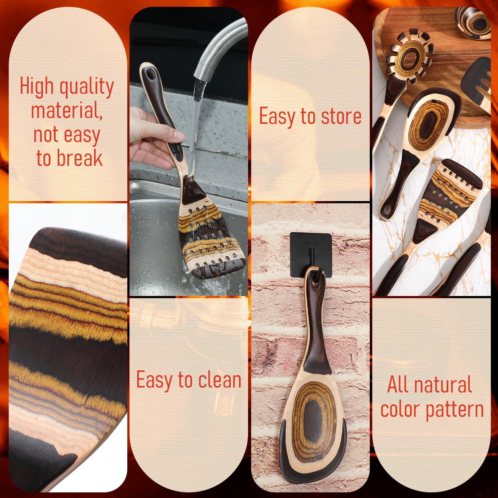 - Sturdy Wood Material: pakkawood kitchen utensils use natural wood, crafted and smooth wood powder color design, safe and sturdy, non toxic, keep dry and is not easy to mold, wood brown tone can also decorate the kitchen, let you cook with better mood