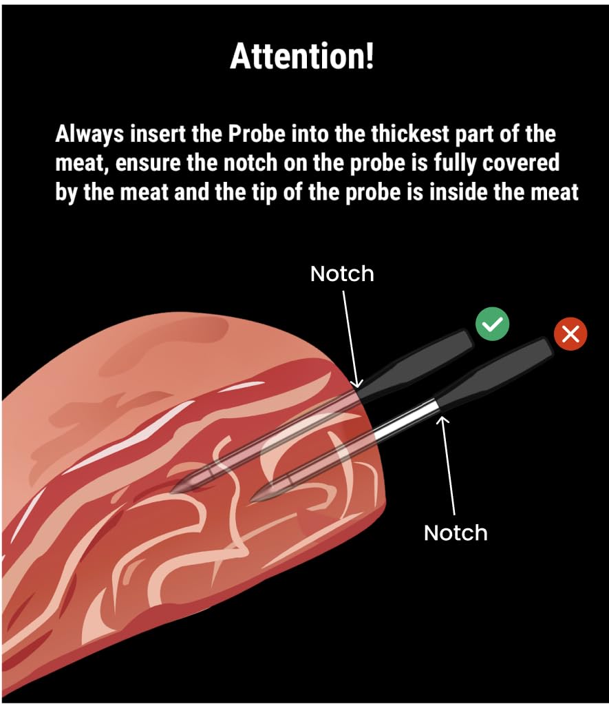 - 【Color-Coded Probes for Easy Organizing:】This wireless thermometer for grilling features color-coded probes that are easy to identify, helping you stay organized when cooking multiple ingredients simultaneously