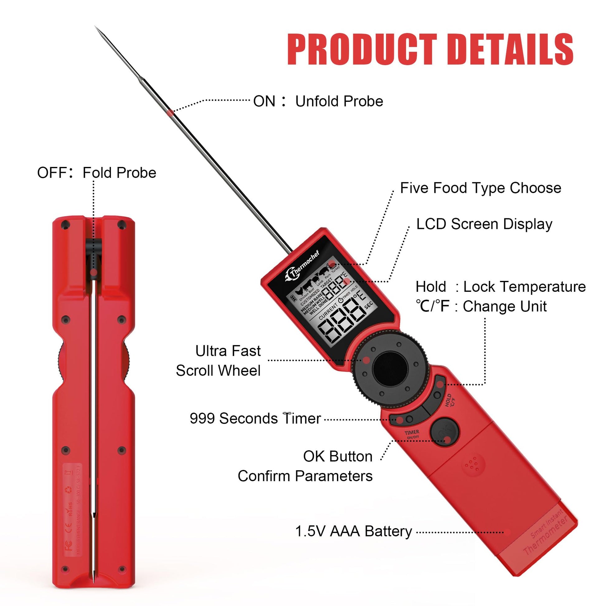 - 【Buy With Confidence】: Thermochef is dedicated to enhancing your user experience. We provide a free exchange within 1 year if you encounter any problems with the product. Just try it out without worry. Our professional digital food thermometer comes with an exquisite package that makes an unique Birthday Gift for Men and Women