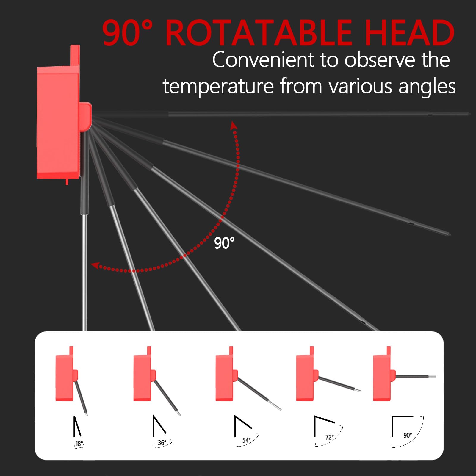 - 【90-Degree Rotatable Backlit Display】The candy thermometer's display can be rotated 90 degrees to allow you to read the temperature measurement from the correct angle