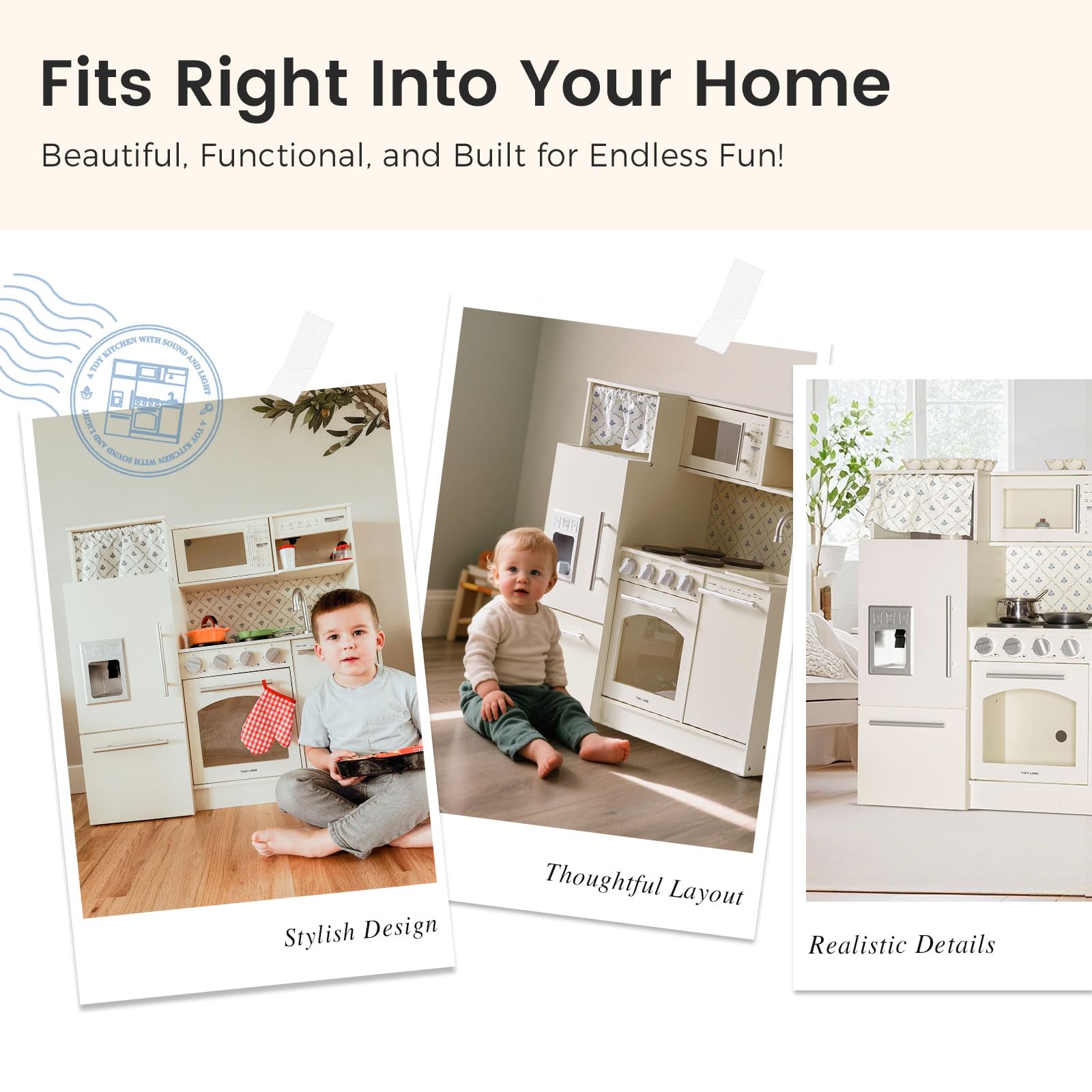- Spacious and Stylish Storage: The built-in cabinets and open shelving offer plenty of space to store toy food and cookware. Keeps the kitchen neat while encouraging kids to stay organized like real little chefs.