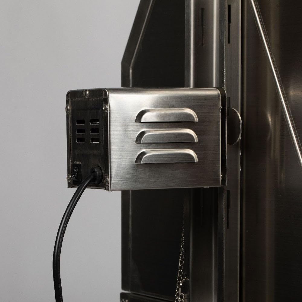 - POWERFUL MOTOR: The rotisserie stand comes equipped with a 35-Watt electric motor that allows the spit rod to spin itself at a speed of 3 RPM.