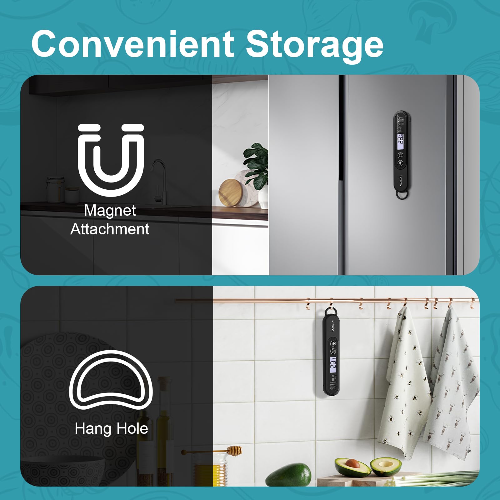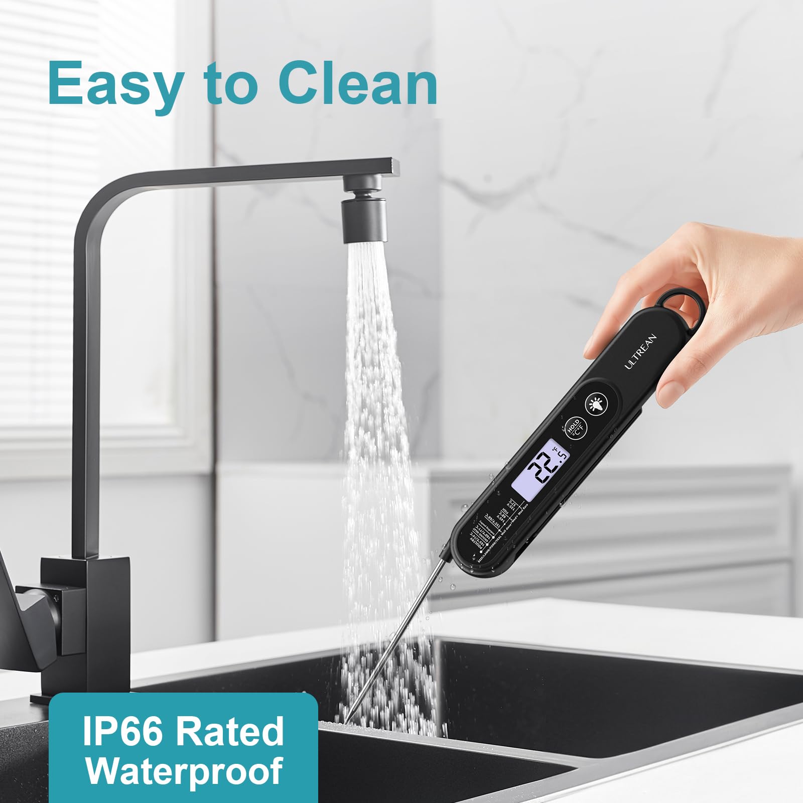 - Waterproof and Durable: The thermometer is rated IP66 waterproof, making it easy to clean under running water after use, no worries! It also has a magnetic back for placement on any metal surface or use with a hanging hook. (Note: Only rinse, do not submerge)