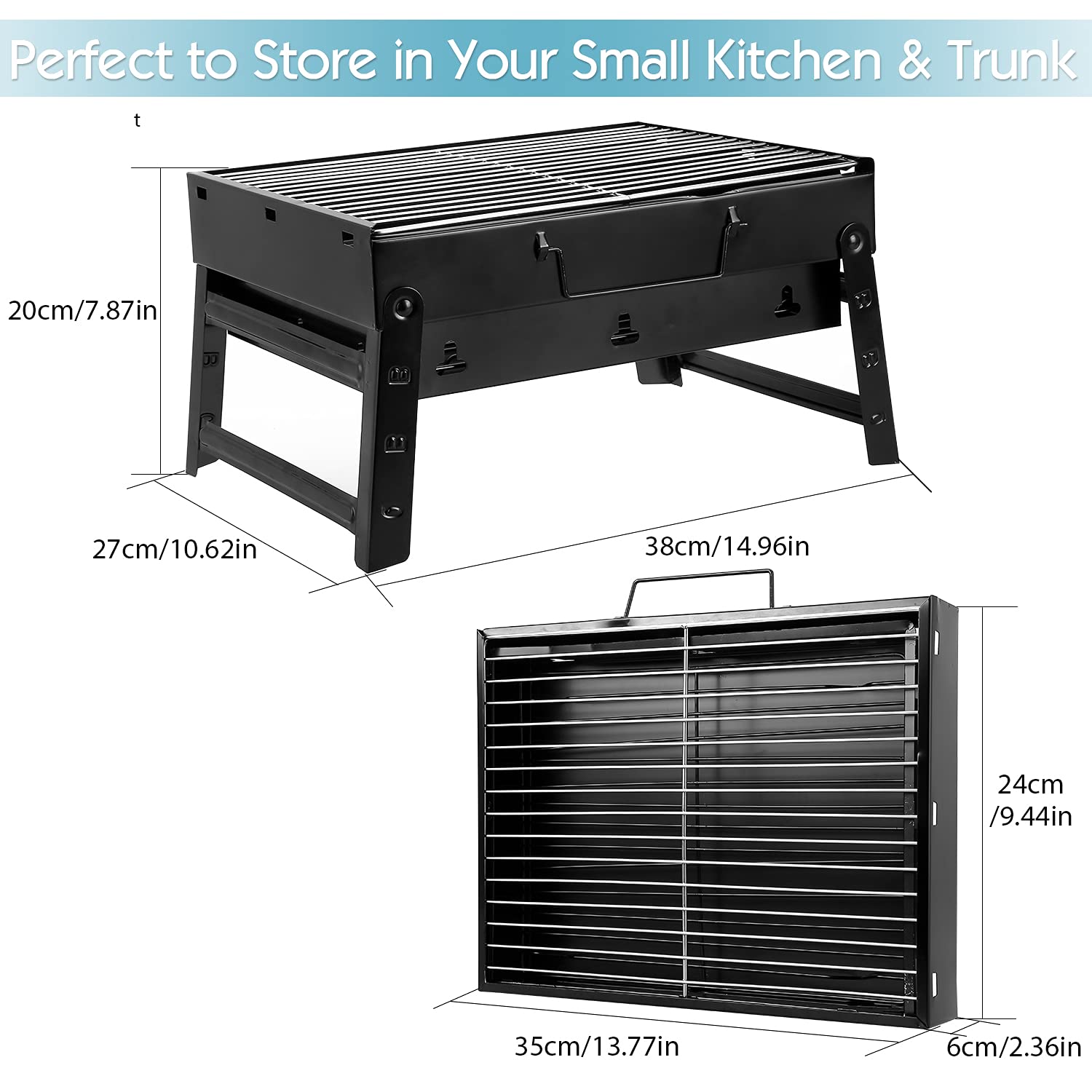 - 【Foldable & Portable Grill】:The portable charcoal grill is foldable.The legs are folded and stowed that it is small in size and lightweight. This small grill is easy to carry ,store and save space.Unfold the folded legs to support the grill in a triangular manner to make the grill more stable.