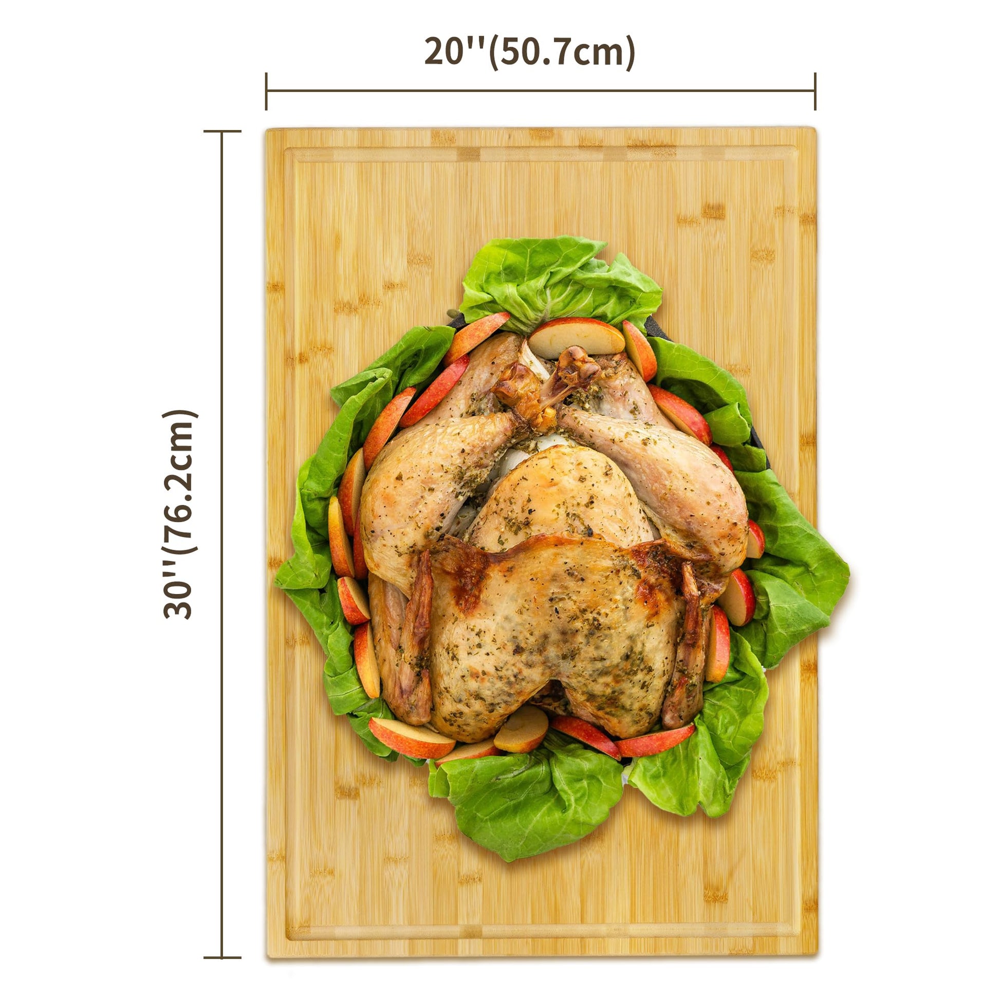 - Extra Large & Tough: large wood cutting board with juice groove has an extra large smooth surface size of 30"L x 20"W, to ensure enough space for your daily kitchen use. Our large cutting board is 1" thick, does not deform even after long-term use