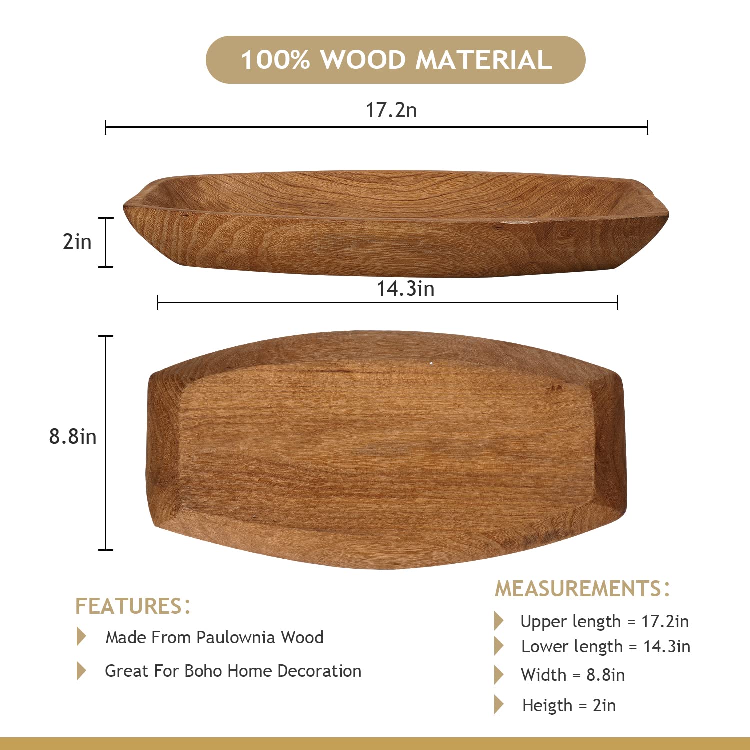 Uziass Wood Dough Bowl, 17.25"x 8.8" Hand Carved Wooden Dough Bowls for Decor Rustic Wood Dough Bowls Decorative Wooden Dough Fruits Bowl for Table Centerpiece Dining Living Room Home Kitchen Decor