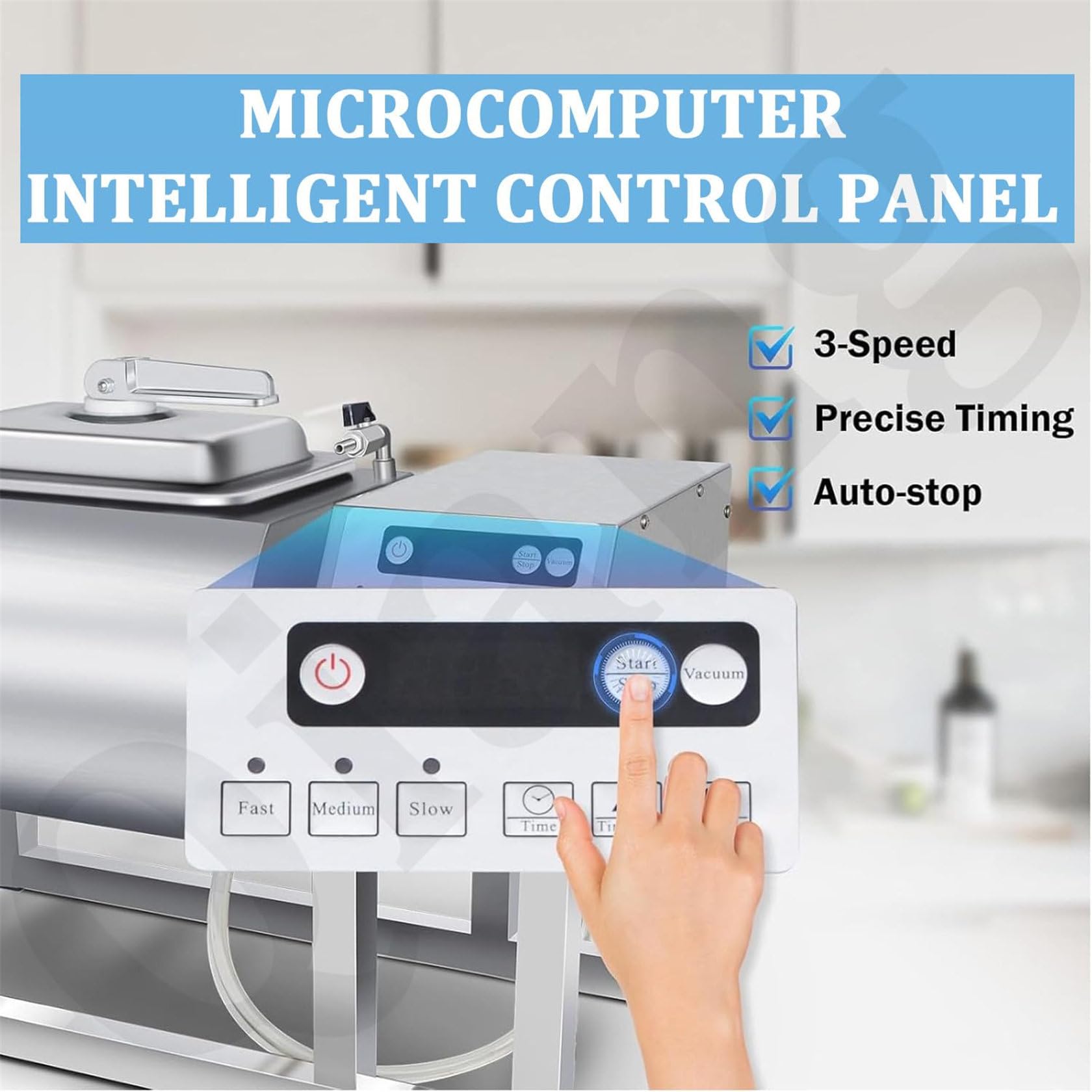 - ₪【One-button precise control】The intelligent control panel adopts microcomputer and imported chips for precise control. Intelligent timing, three-speed adjustment and emergency stop functions ensure a smooth and unimpeded marinating process.