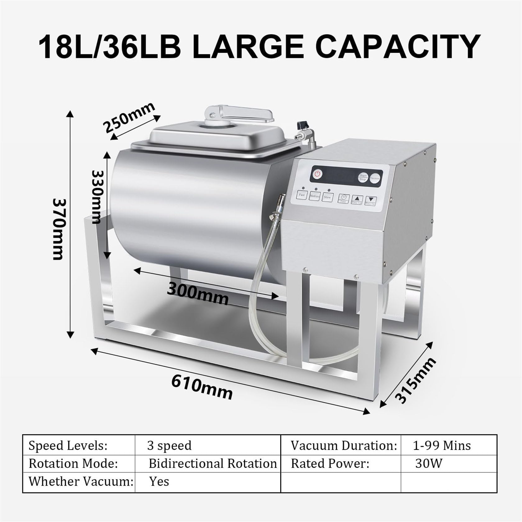 Vacuum Tumbler 18 Liter Capacity, Meat Tumbler Marinator Machine, 30w Bidirectional Rotation, 3 Speeds, Fast Marinating For Gently Mixing, Marinating, Salting, And Pounding Meat Under Vacuum