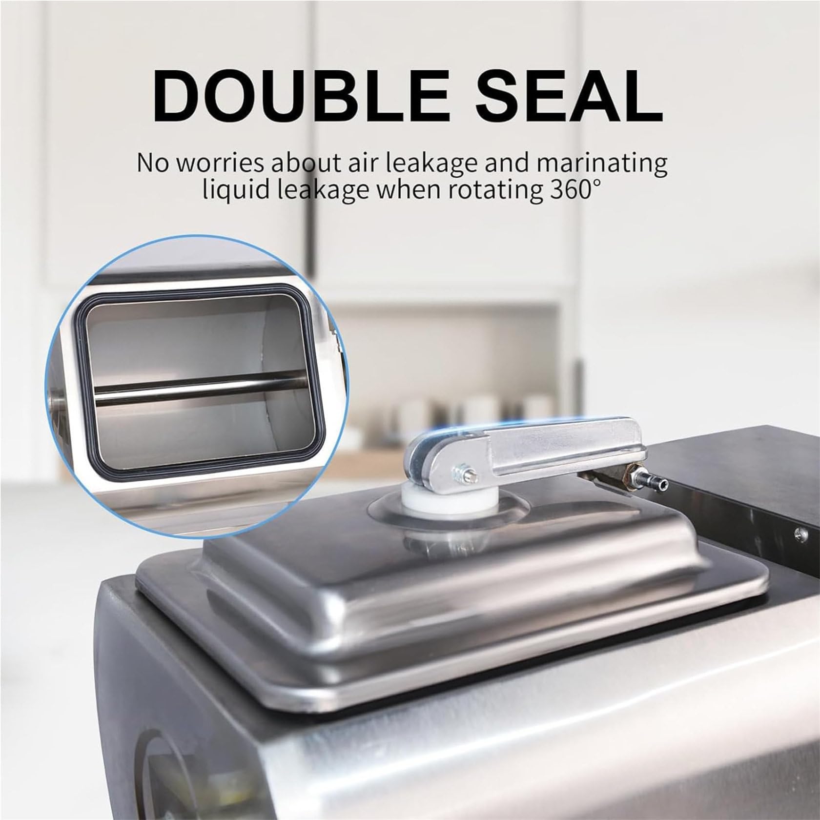 - ₪【Double seal to keep fresh】The double seal design prevents air leakage during 360° rotation, ensuring a fast and effective vacuum marinating process. Your ingredients remain fresh and delicious throughout the marinating process.