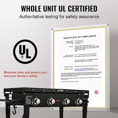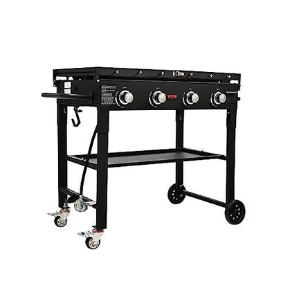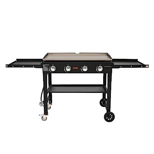 VEVOR Commercial Griddle on Cart, 36" Heavy Duty Manual Flat Top Griddle, Outdoor Cooking Station with Side Shelves, Steel Natural Gas Griddle, 4-Burners Restaurant Portable Grill - 60,000 BTU