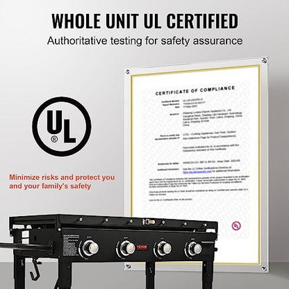 - Durable Material: The griddle flat top grill is made of hot-rolled steel, ensuring its durability. It comes with a layer of vegetable oil coating to prevent rust and ensure healthier and safer cooking. The burners are made of stainless steel, capable of withstanding high temperatures without deformation.