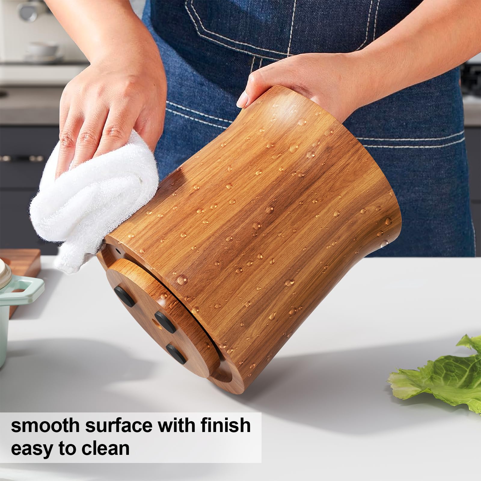 - 【Sturdy and Safe】:The cooking utensil holder provide easy access to your dishes, and the non-slip mat affixed to the bottom protects the countertop for smooth and comfortable use.The acacia wood is thick enough to ensure its own weight and avoid turning over.