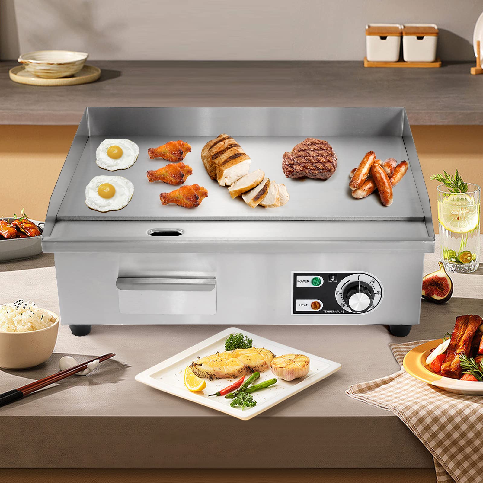 - 【Wide Application】3000W high power commercial electric countertop griddle can be used in family or commercial places, such as restaurants, shops, roadside stalls, snack bars, canteens, chain stores, supermarkets, etc.; It is very suitable for processing vegetables, meat, steak, grilled cheese, pancakes, scrambled eggs, crispy bacon, rich breakfast, fried dishes, omelets, pizza.