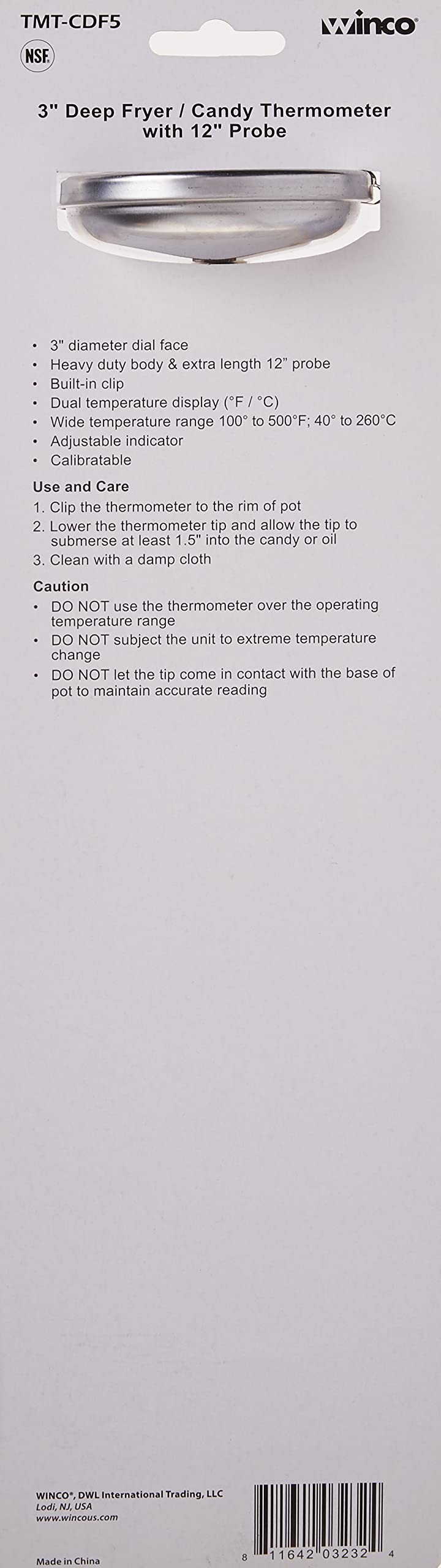 Winco - TMT-CDF5 3-Inch Dial Deep Fry/Candy Thermometer with 12-Inch Probe