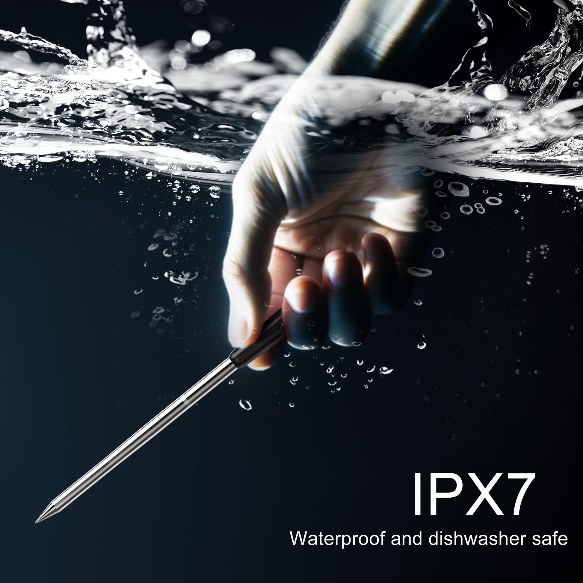 - Dual-Temperature Monitoring with Ceramic Probe: 2 ultra-thin wireless meat probe sensors track internal meat temp (212°F) and ambient Grill/Smoker temp (572°F) simultaneously. Heat-resistant ceramic handle ensures faster heat transfer & meat integrity. IPX7 waterproof probes and dishwasher safe, effortless cleaning.