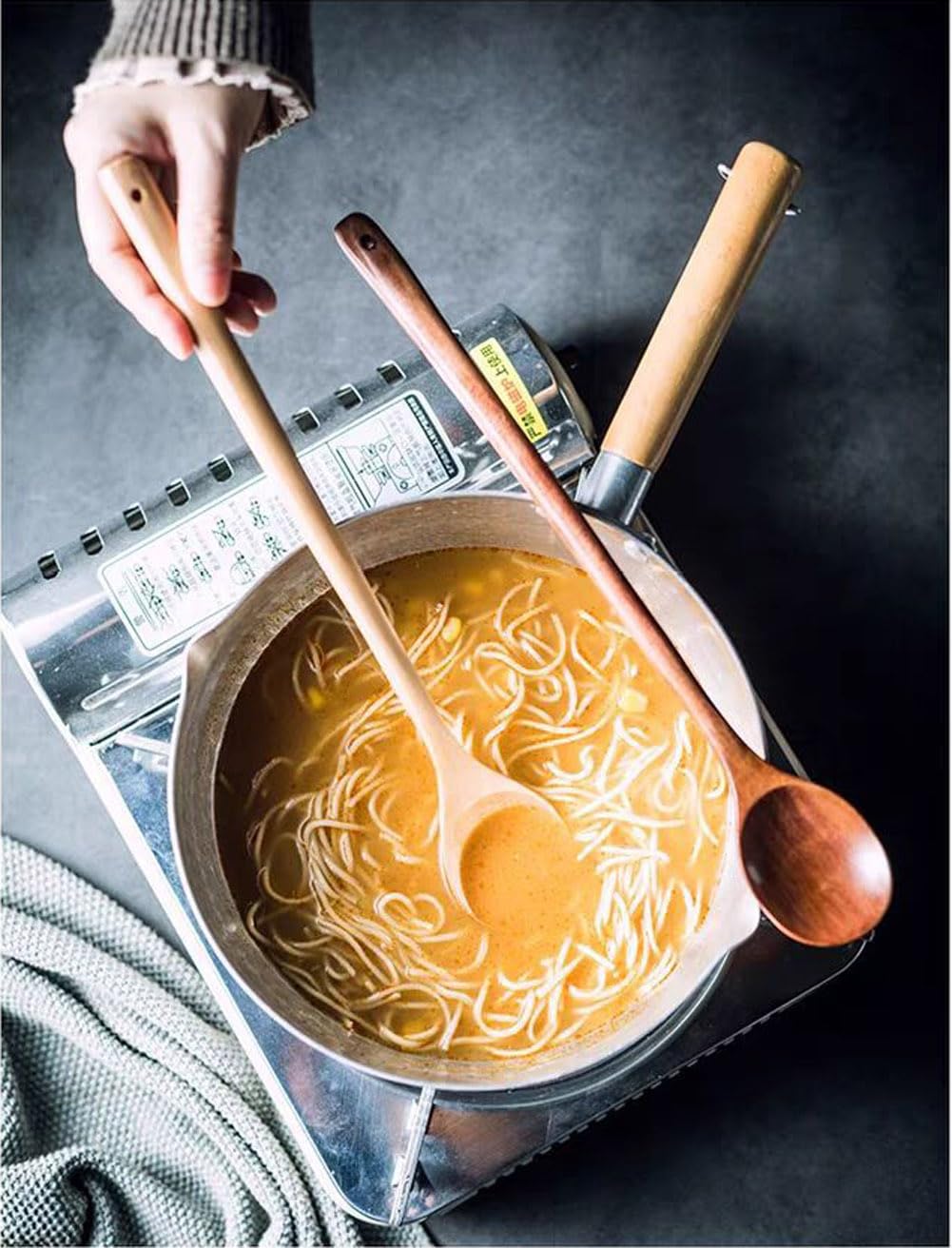- FANTASTIC ADDITION TO KITCHEN, Our wooden spoons is heat-resistant and scratch-proof, lightweight and handy. Long and comfortable handles make these cooking spoons easy to hold when stirring food for a long time and protect your hands from the heat of your dish. The angled edge also easily gets to the corner of the pots. It will not get warm and melt like silicone utensils or crack like bamboo spoons. It's destined to replace other out of date low-end kitchen utensils.