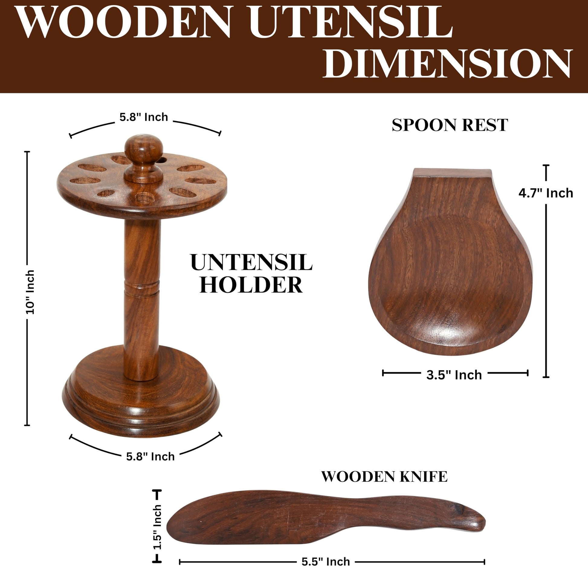 - 8-Piece Premium Set – Includes spatulas, serving spoons, salad fork, skimmer, soup spoon, wooden knife, butter knife, spoon rest, and a 360° rotating wooden holder for stylish storage.