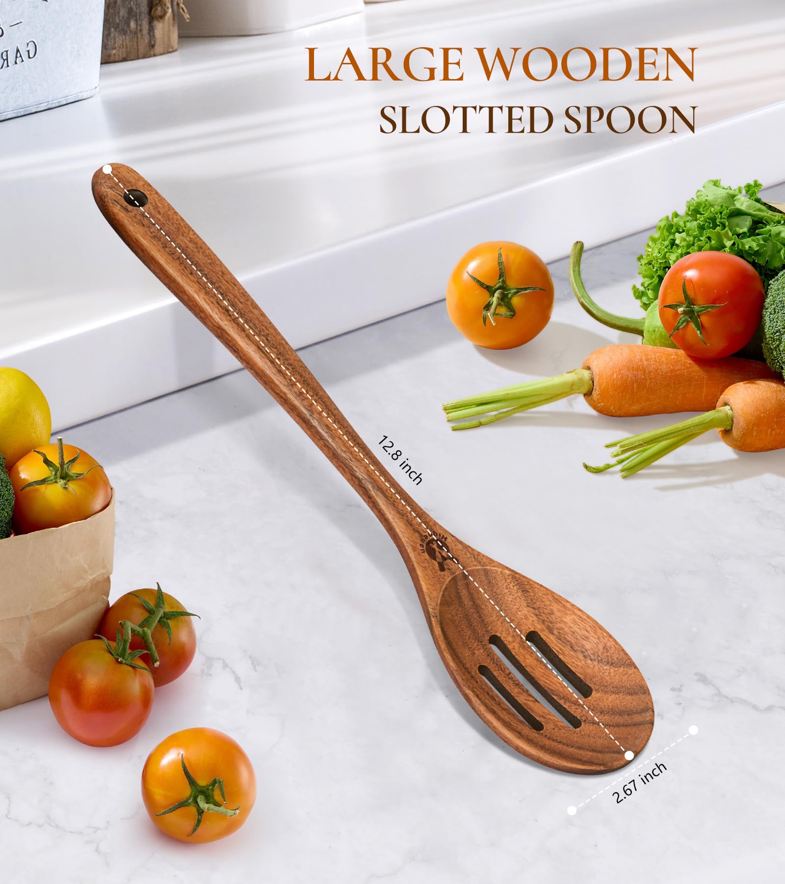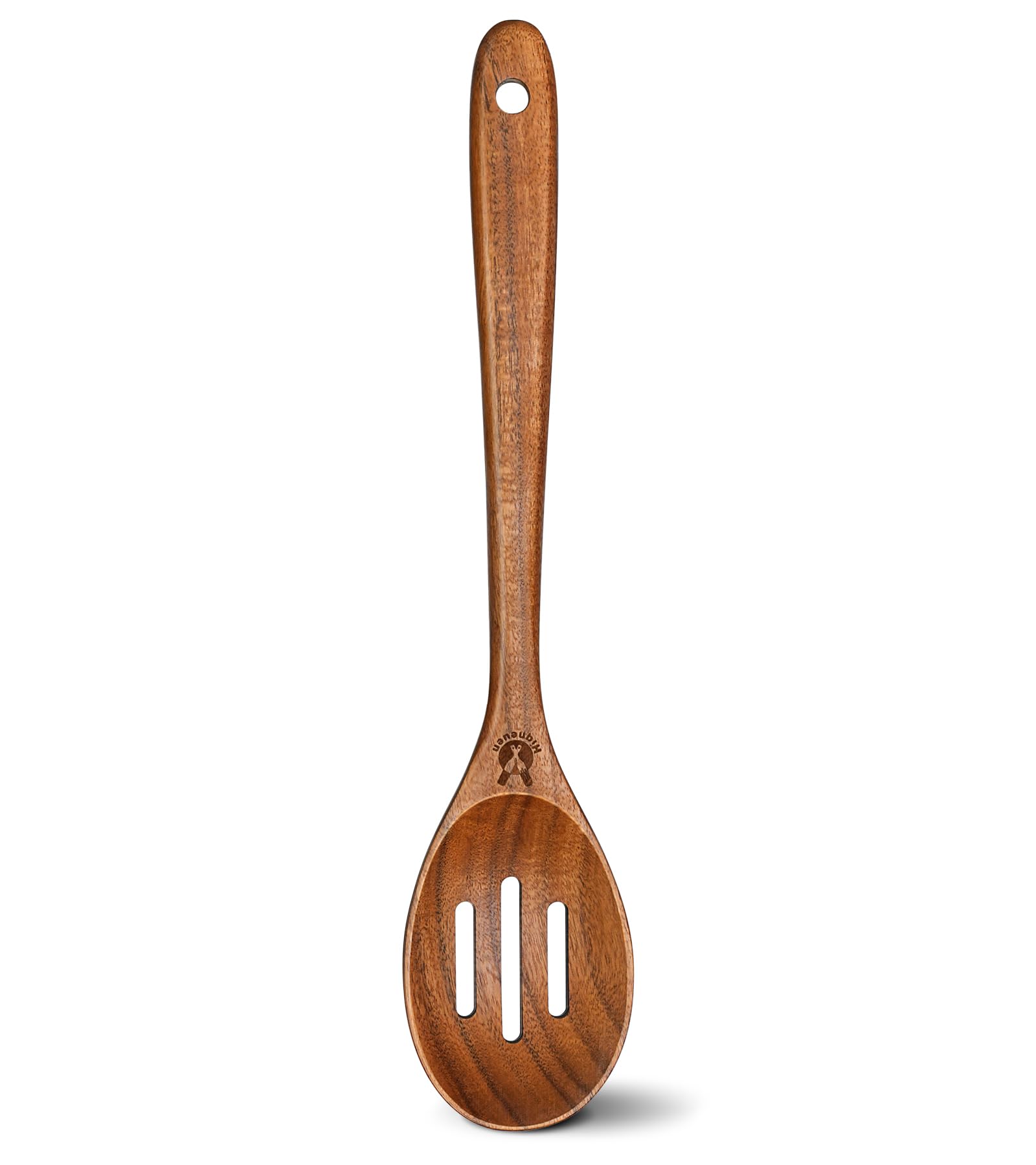 - FANTASTIC ADDITION TO KITCHEN: Our wooden slotted spoon is heat-resistant and scratch-proof, lightweight and handy. Long and comfortable handles make these wooden spoons easy to hold when stirring food for a long time and protect your hands from the heat of your dish. Slotted Spoon can quickly drain the water. Whether it is used for draining or serving food, our large cooking spoon will add more fun to your kitchen.It's destined to replace other out of date low-end kitchen utensils.