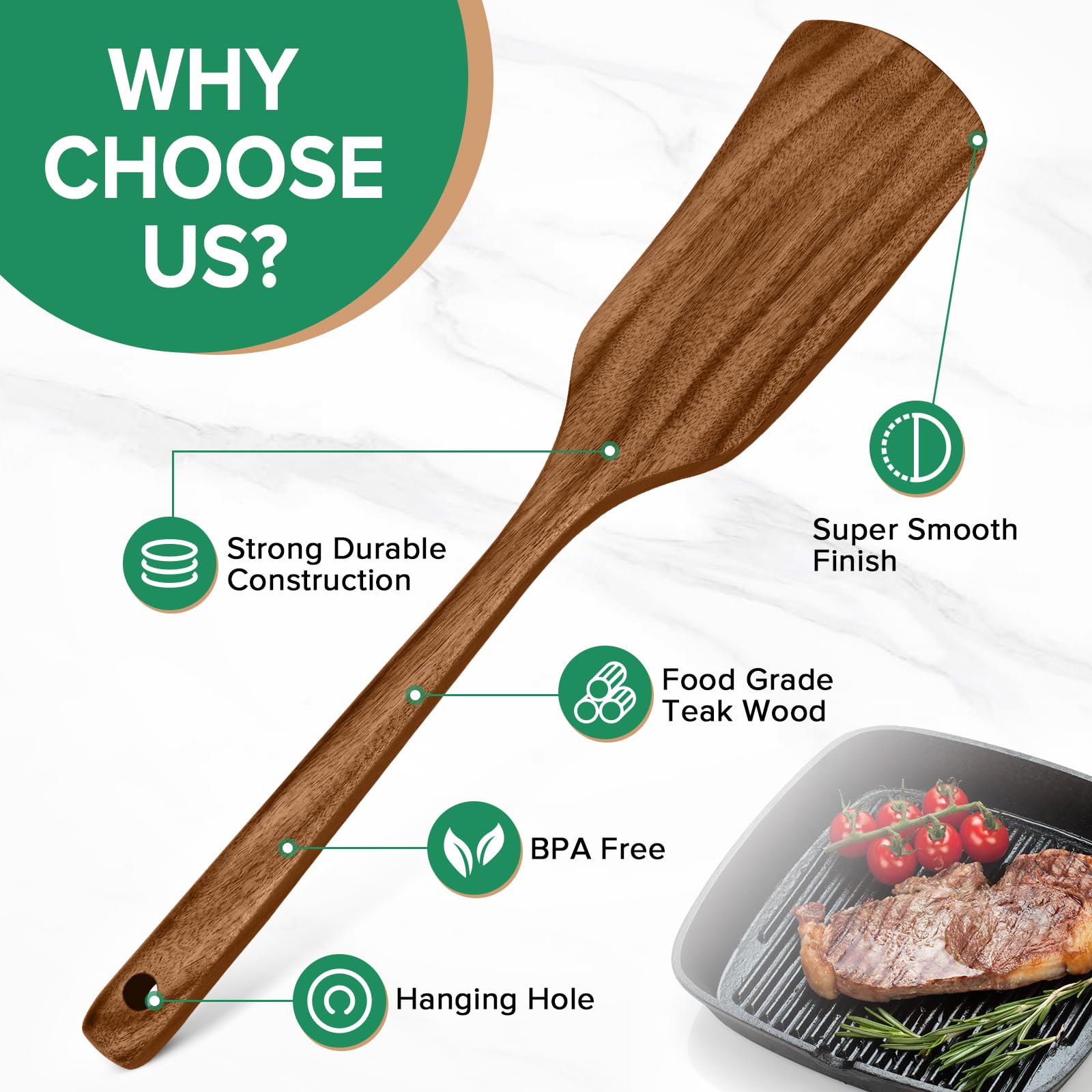 - Premium Material:This wooden spatula for cooking is made of food-grade natural teak wood.Non-toxic,no-rust,heat-resistant,bpa-free and healthy for daily kitchen use.Our non-stick teak wooden utensil set is also nice looking,durable,good stability and won't deform easily.