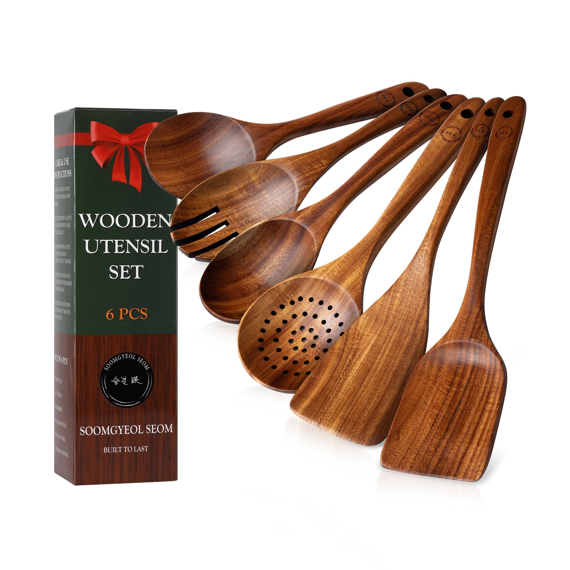 - PREMIUM TEAK WOOD UTENSILS – ELEGANT & DURABLE: Expertly crafted from high-quality, sustainably sourced teak wood, these utensils combine durability with natural beauty, making them a perfect addition to any kitchen