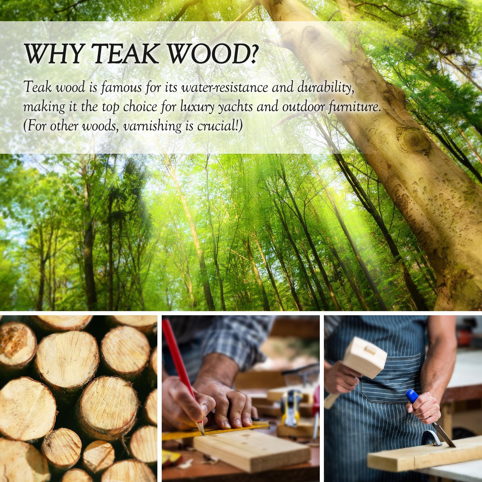 - NATURAL TEAK WOOD COLOR VARIATION: A slight brown hue may appear during initial washes due to the natural oils and pigments of teak wood, highlighting its authenticity