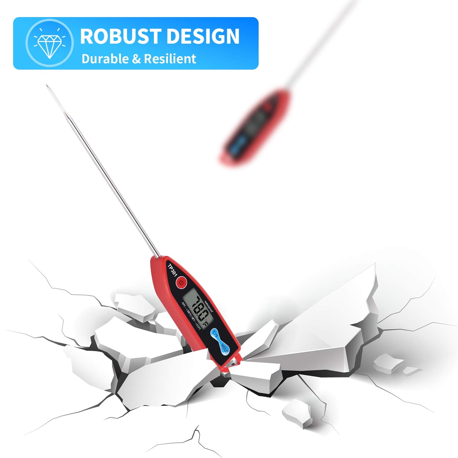 - WATERPROOF - IPX7 waterproof. No worry on the rinse or wash under running water after measuring, easy clean and keep your digital food thermometer always in good shape!