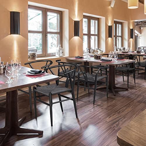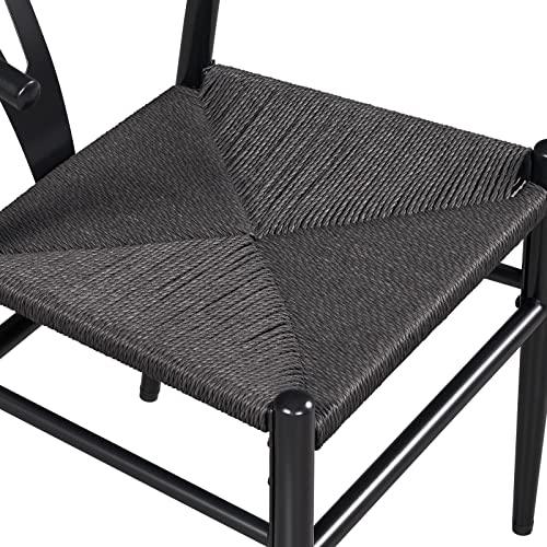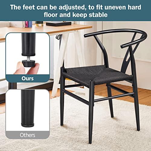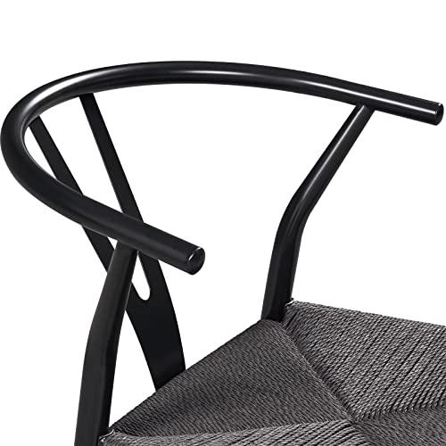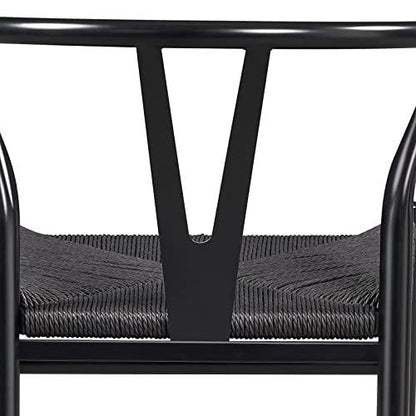 Yaheetech Set of 4 Weave Chair Mid-Century Metal Dining Chair Y-Shaped Backrest Hemp Seat, Large Black