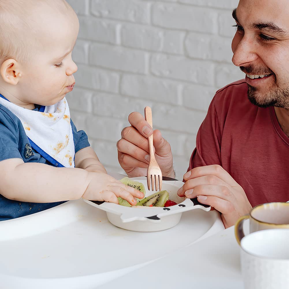 - ✔ LIGHTWEIGHT AND NON-SLIP: Due to the special nature of wood, the tableware is very non-slip and lightweight, easy for kids to grasp and eat, weight: 0.25 ounces, easy to carry on the go, even if you drop the lightweight tableware is not worried about smashing kids, safe and worry-free