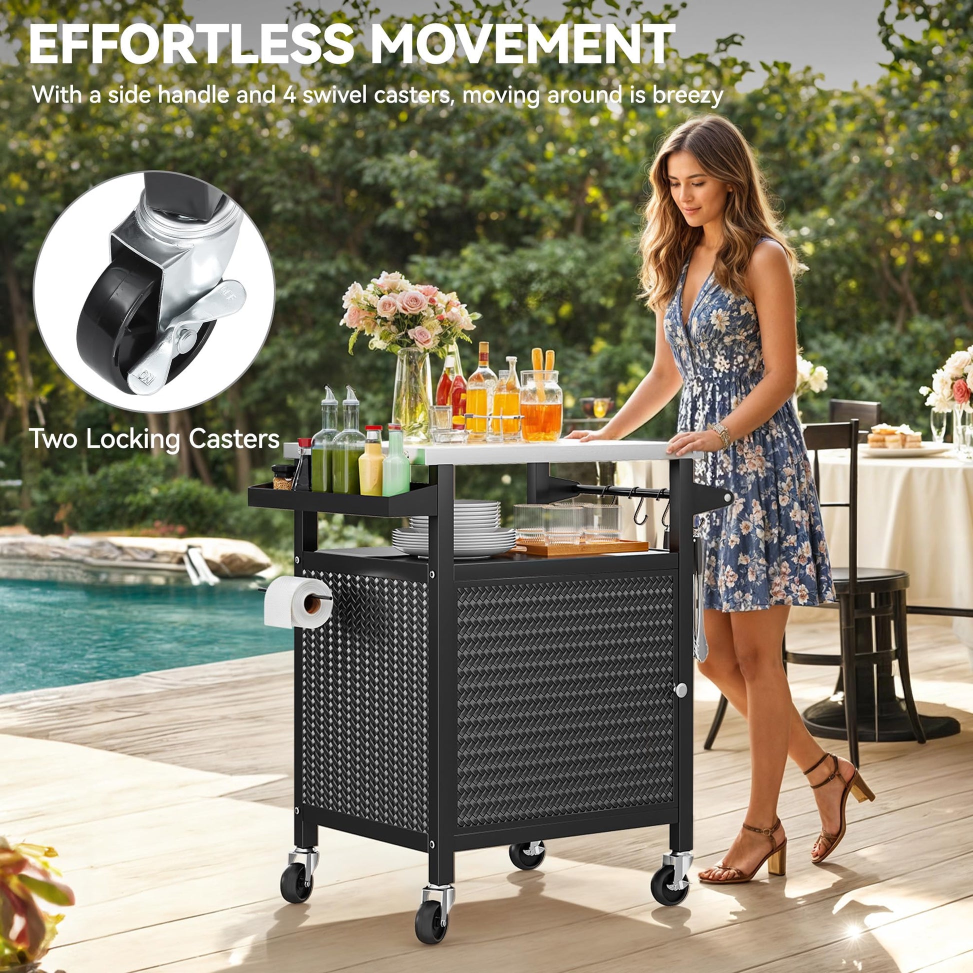 - Dimensions: The overall dimensions of this outdoor kitchen rolling bar cart are 32.5"L*20"W*36"H, offering a generous surface for food preparation, serving, and entertaining; The desktop measures 25"L*20"W*1.6"H