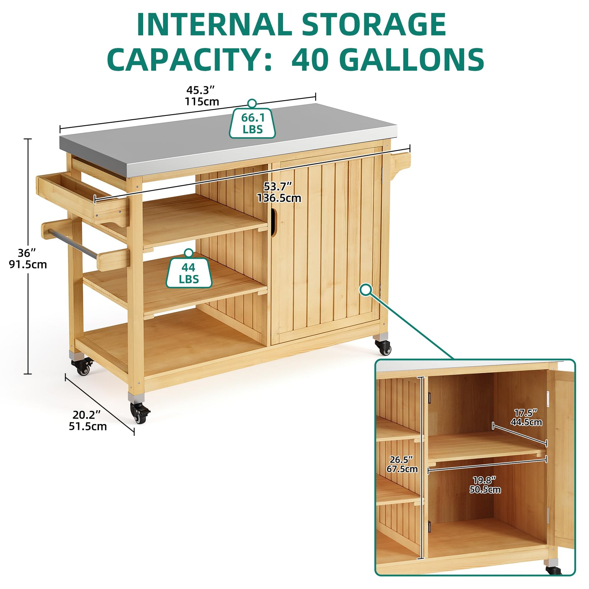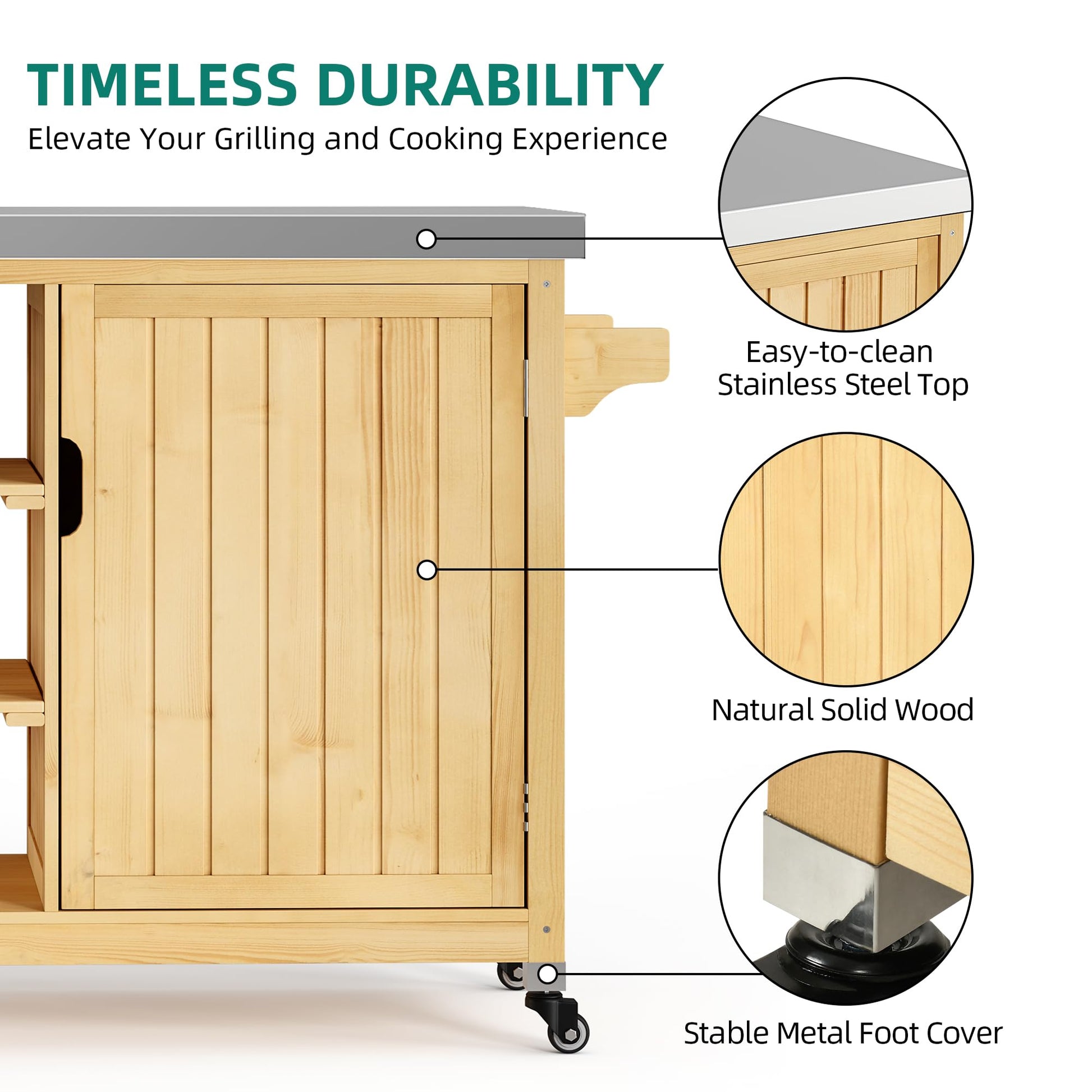 - Durable and Natural Structure: Made of Premium Fir Wood can restore the appearance of nature to the greatest extent, is friendly harmless reduces chemical paint, 201 stainless steel table top makes sure you can cut food on the table without leaving a scratch.