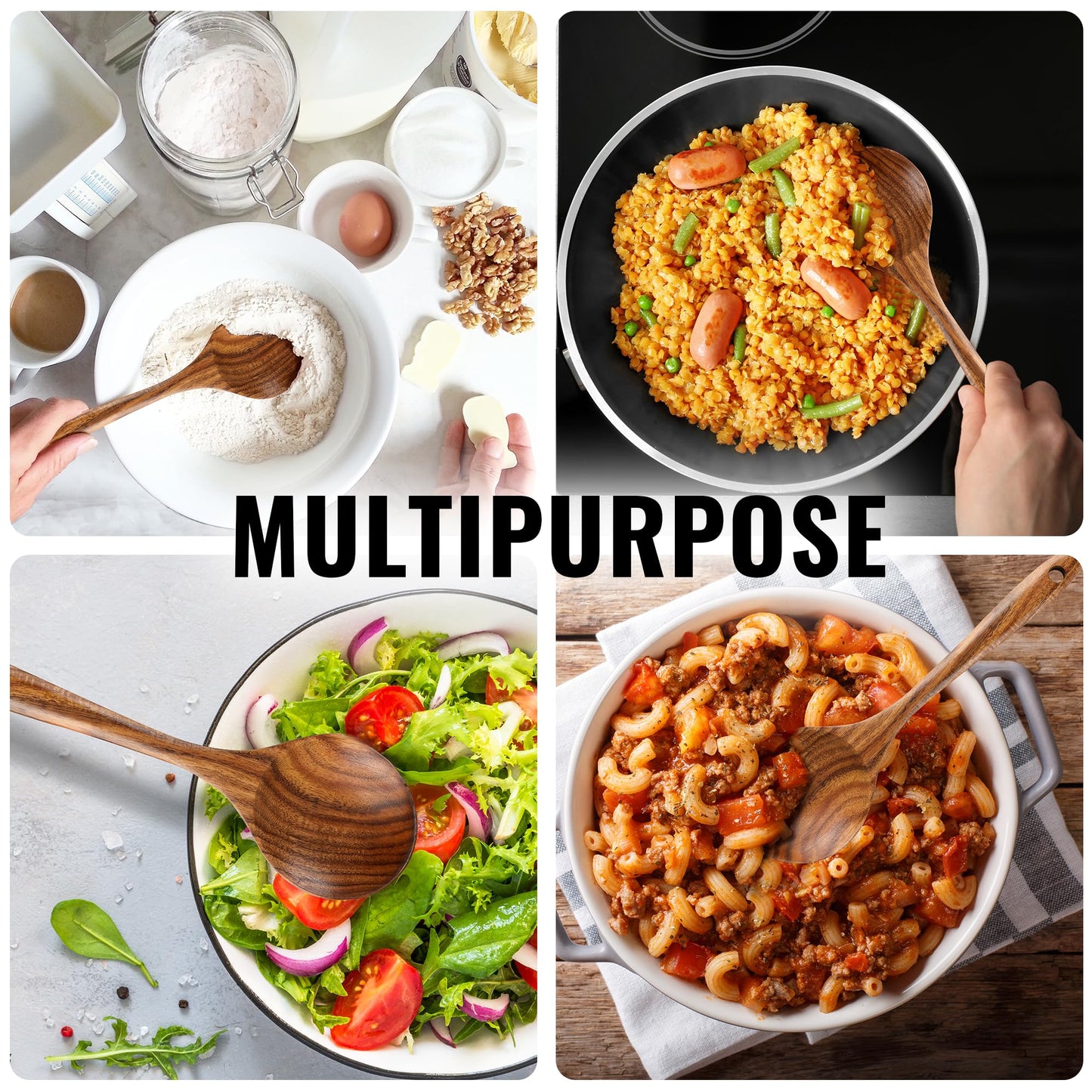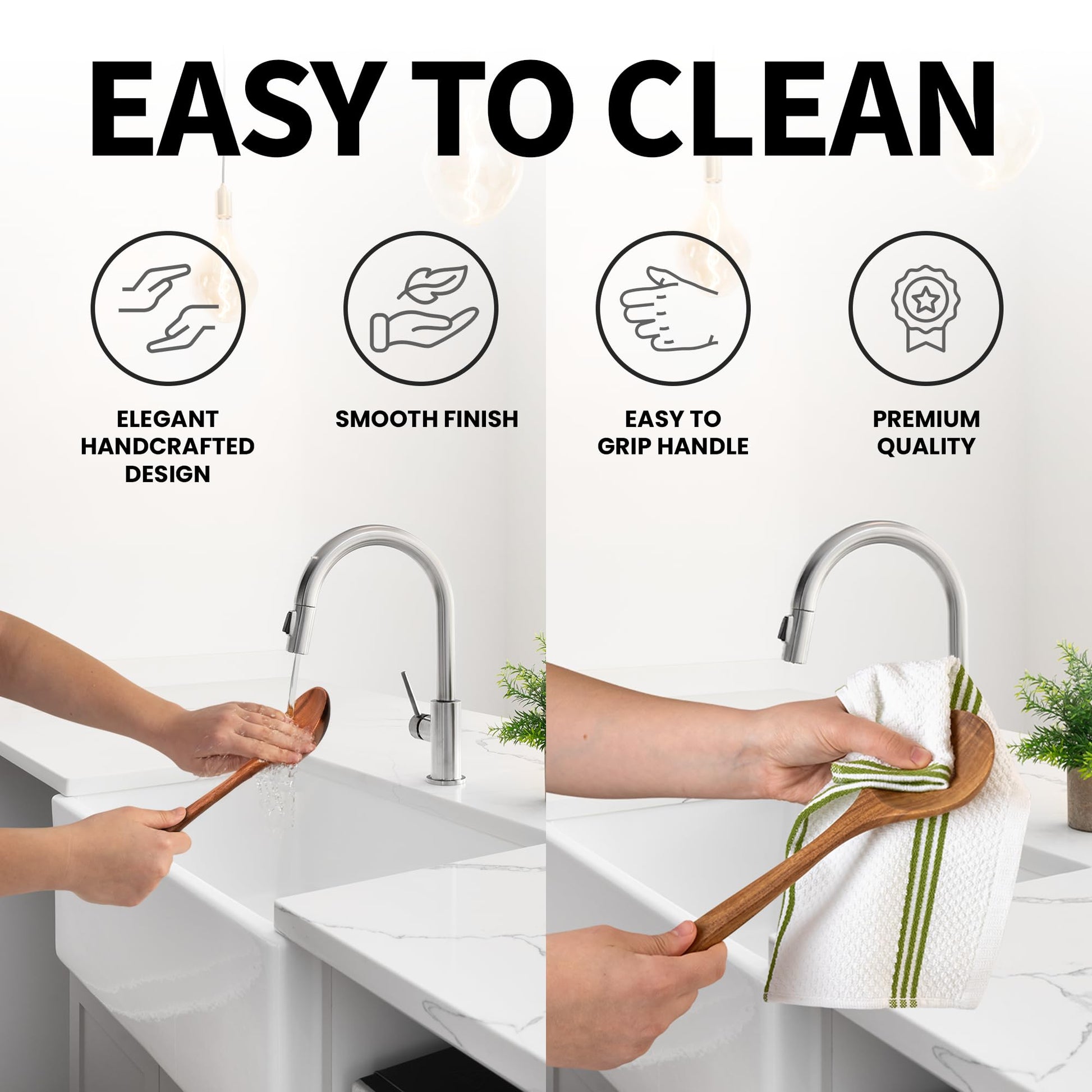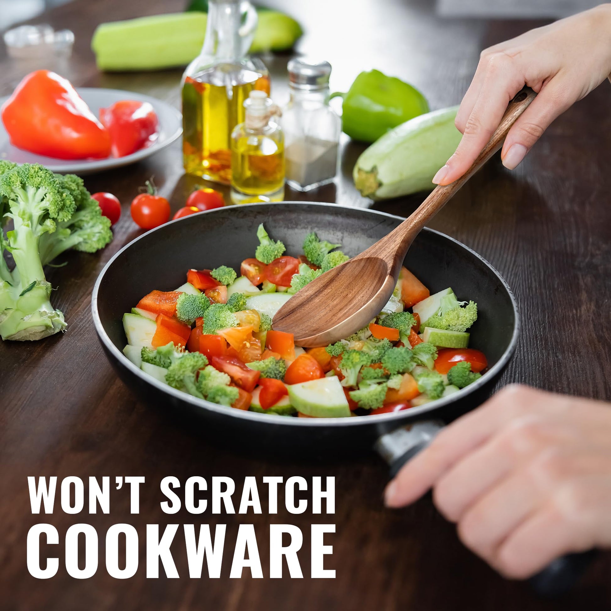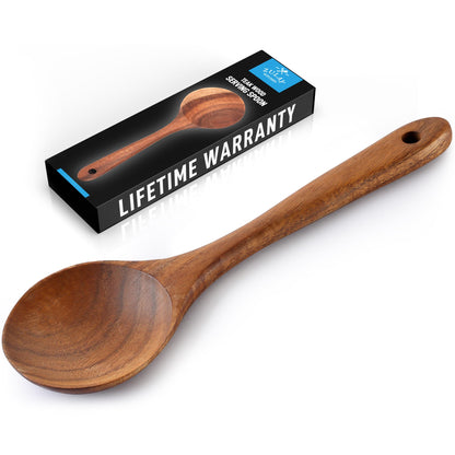 Zulay Kitchen Premium Teak Wooden Spoon For Cooking - Durable Handmade Wooden Cooking Utensil, Perfect Wooden Kitchen Utensil Set Addition, Smooth Finish Natural Teak Spoon, Non-Stick Wooden Spoon